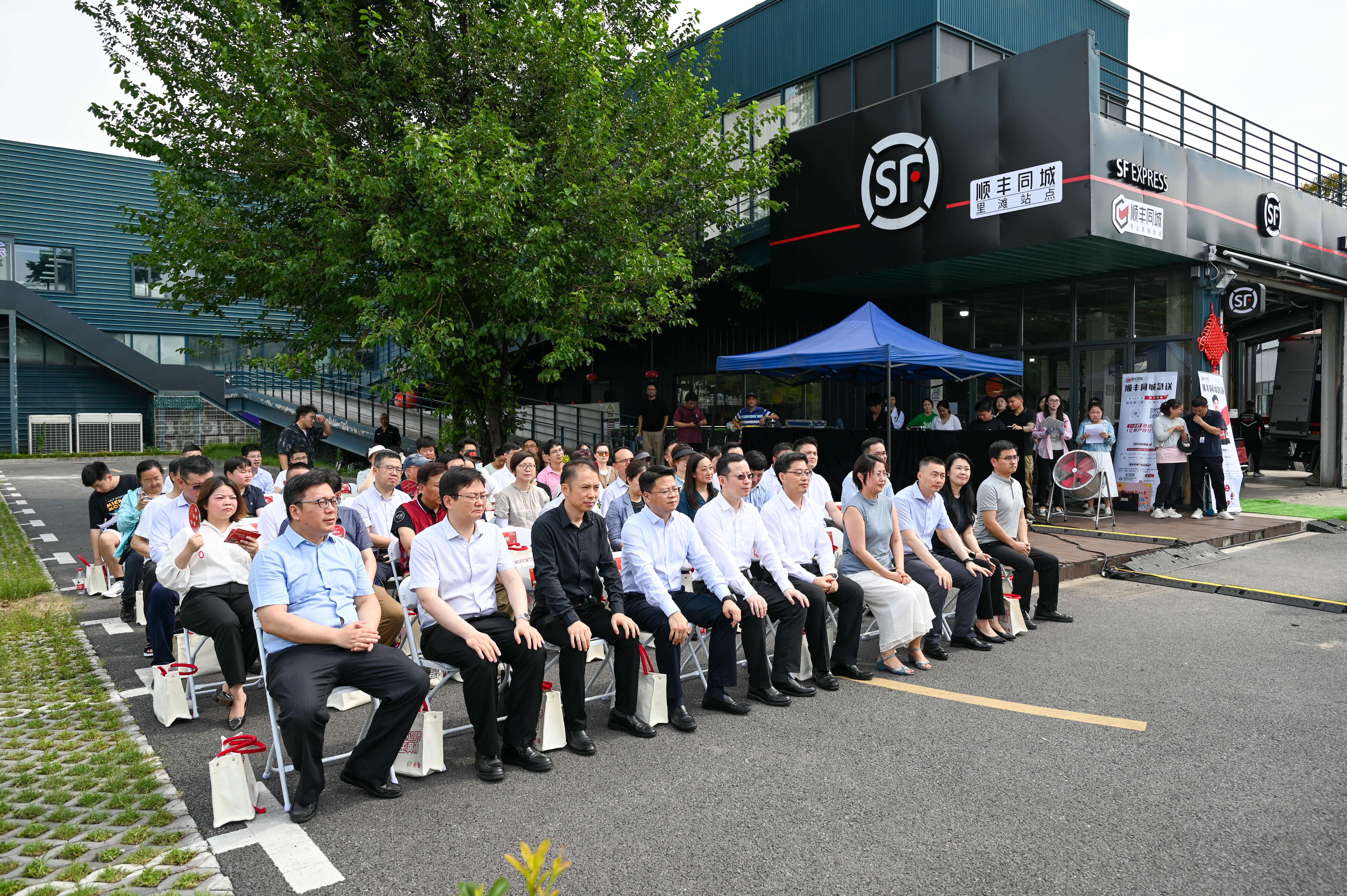 与会领导和嘉宾还察看了五里桥街道新就业群体党群服务站和顺丰同城里滩站点。局门路699号是五里桥街道辖区快递站点集中的大型园区,顺丰同城里滩站点就在其中。该园区是街道进一步扩大党建全覆盖攻坚行动的试验田之一,不仅在这里成立了里滩新就业群体联合党支部,还建起了新就业群体党群服务站、推出了“五享十悦”新兴领域服务品牌。顺丰同城里滩站点负责人则详细介绍了站点的日常运营情况,全面展示了顺丰同城在提升配送效率、保障服务质量上所作出的不懈努力和取得的积极成果。