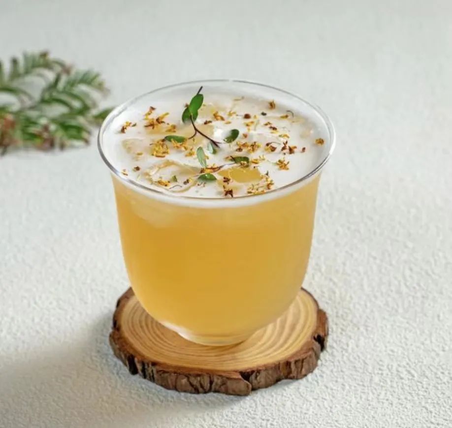 新鲜梨肉的清甜搭配龙井茶的馥郁香气,再点缀上桂花,入口清爽还透着丝丝桂花香,一口便能体会夏日的清爽,好喝!