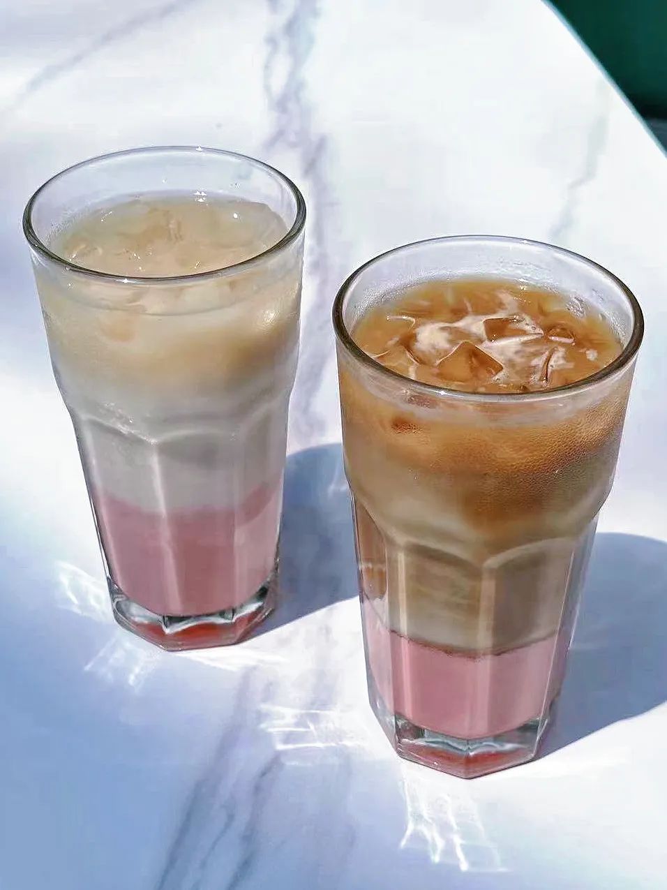 西瓜乌龙拿铁和西瓜乌龙冰椰乳是夏日由心•徽饮特别推出的创意特调。精品咖啡融合原叶现泡的武夷山岩香乌龙,加上麒麟瓜品种西瓜汁,让人沉浸在冰凉沁爽的馥郁香气中~