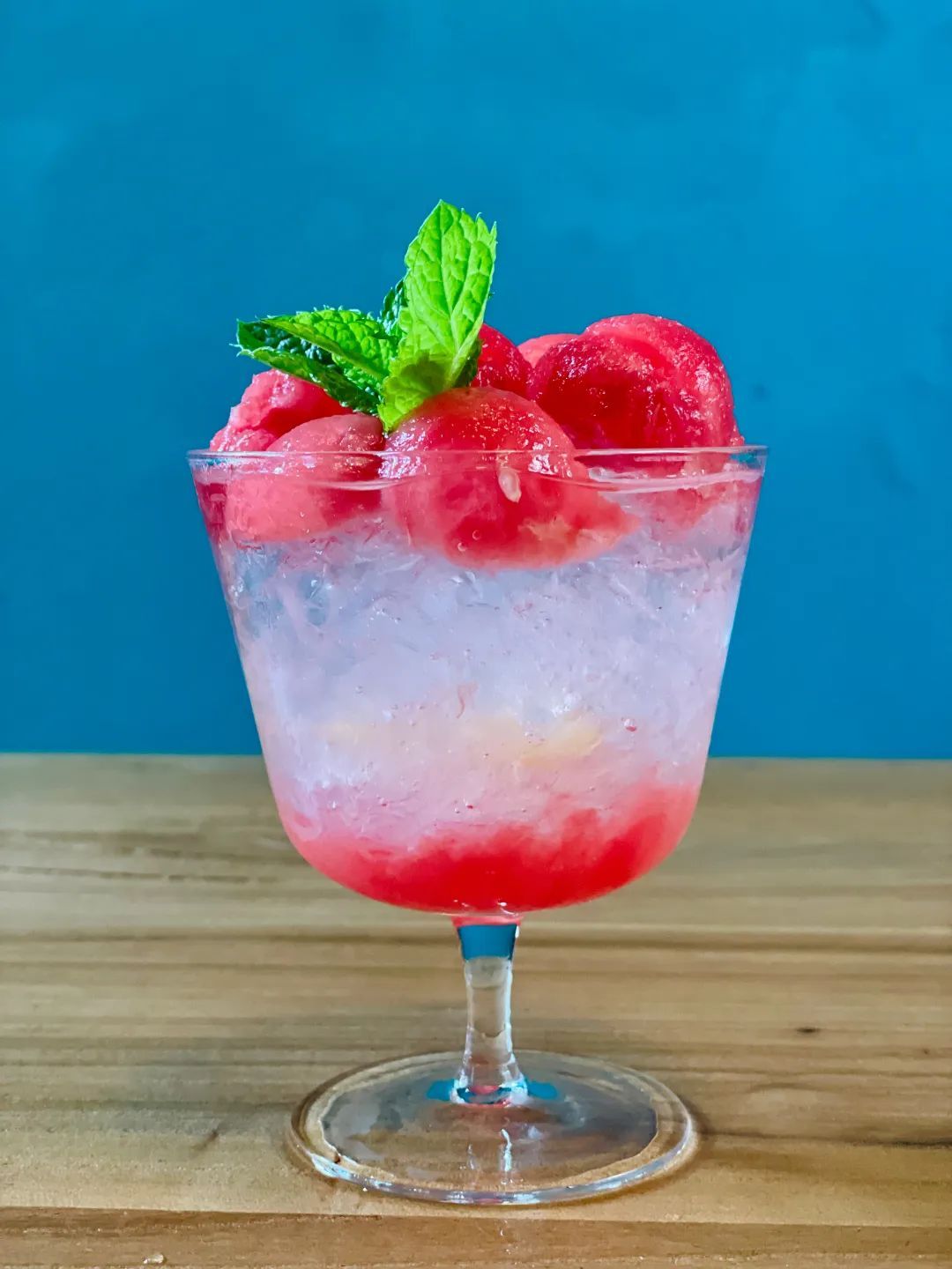 像火焰燃烧一般炙热的真露烧酒遇上清爽可口的冰镇西瓜,搭配清新满分的柠檬,满杯夏日氛围,不仅刺激味蕾,更带来浓郁热烈的美好。