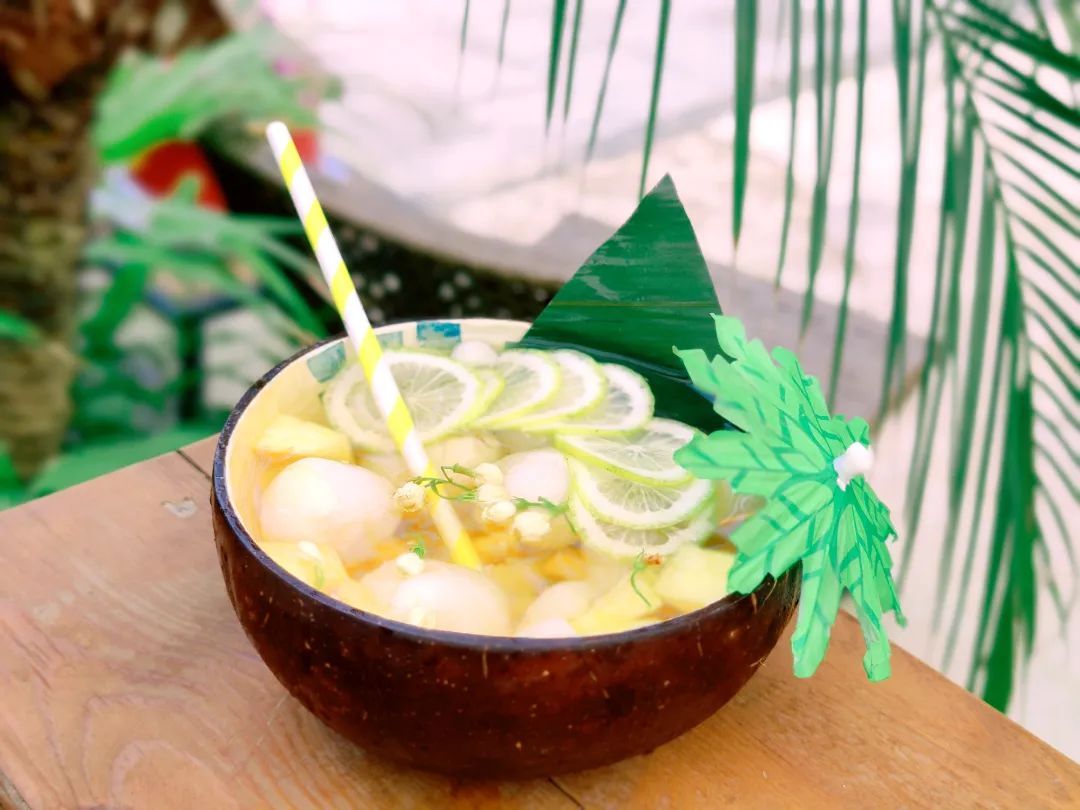 以香茅茉莉花青柠水作为味道打底,后加入荔枝、菠萝、小圆子,果肉清甜满溢,喝的同时还能大口咀嚼饱满的果肉,花香味与果香味相得益彰,大块的方冰加入,绝对清爽~