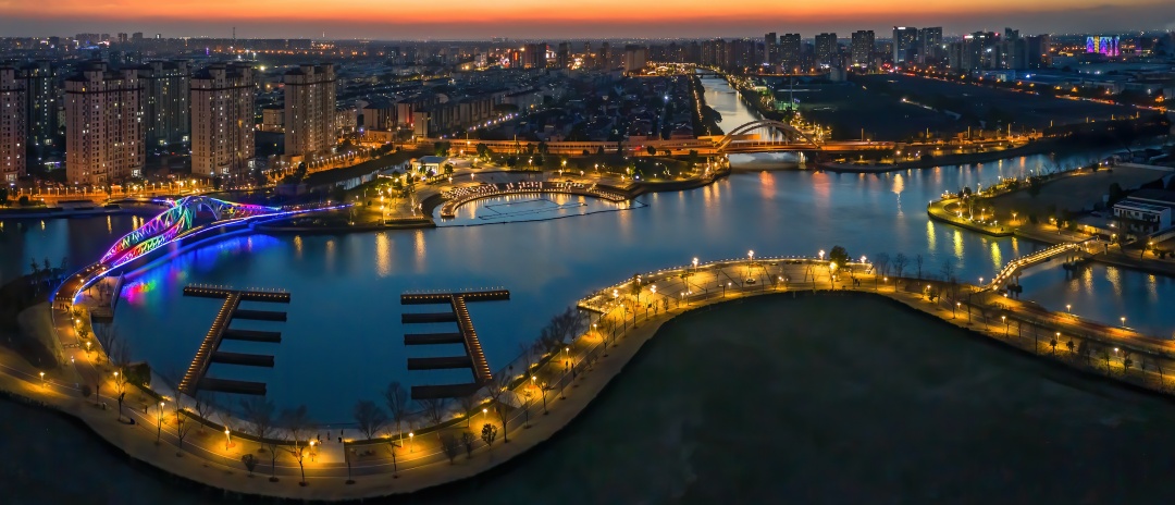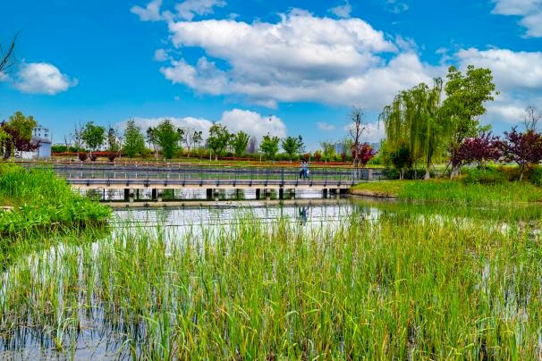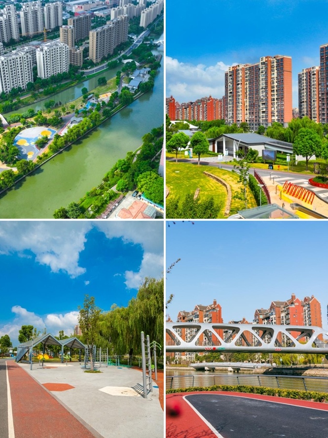 环城水系公园一期、二期,项目建设总面积约150万平方米,其中新建桥梁31座,形成了3000亩滨水开放空间。