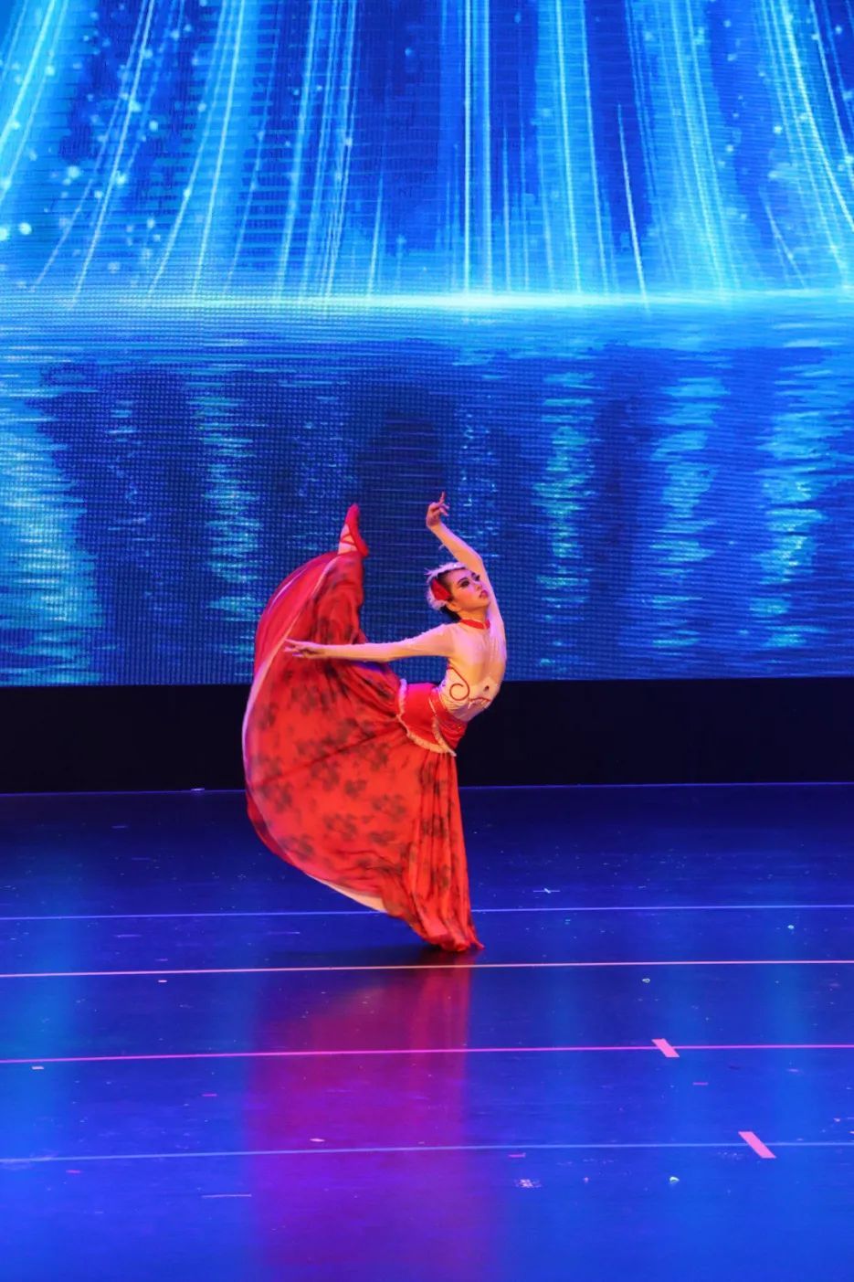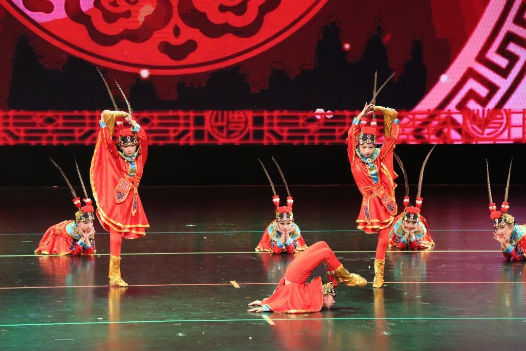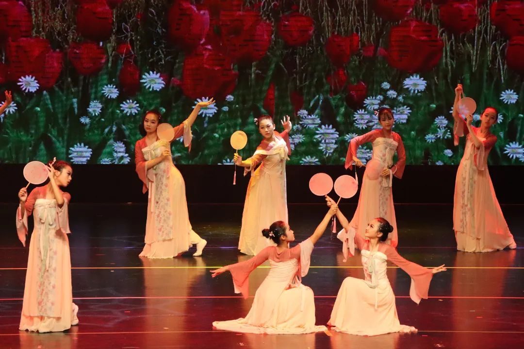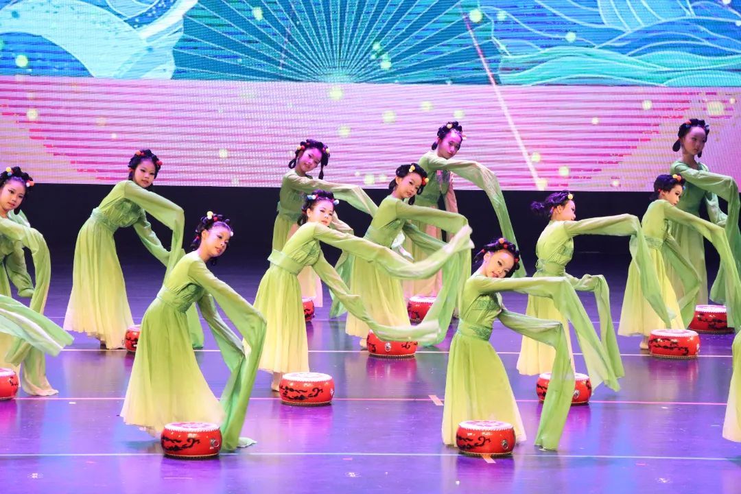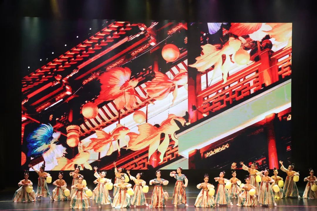 展演在柔美动人的《华灯上·月故乡》中拉开帷幕。一群穿越时空而来的姑娘手持宫灯翩然登台,端庄优雅的舞姿尽显“大唐风姿”;《五彩彝裳》则展现了少数民族多彩而奔放的舞蹈特点;在《盛世敦煌》中,少女们轻盈灵动的身姿诠释着中国舞的古典与华丽……