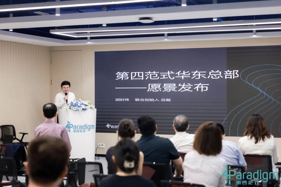 第四范式作为全球领先、国内自主创新的人工智能龙头、行业内的隐形冠军,成立10年来,在迁移学习领域保持世界前沿,在智能决策、机器学习平台方面占据中国市场份额第一。第四范式联合创始人、总裁胡时伟在仪式上发布了华东总部的愿景展望——未来三至五年内,第四范式将在上海设立AI产业赋能中心、AI创新研发中心、AI创投孵化中心、国际数据及算力综合服务平台,“三中心一平台”将全面赋能包括金融、零售、制造、能源电力、电信等多个行业的数字化转型。通过这一布局,不断推动人工智能战略的深入实施,加速新技术的落地应用,促进区域经济的转型升级。