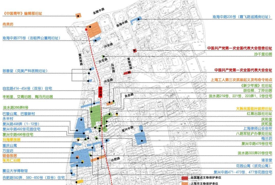 社区紧邻“党的诞生地”——中共一大会址,沿线及周边有《中国青年》编辑部旧址、陈云旧居等41处红色遗迹遗址,串联起淮海路、新天地、思南公馆等文化地标,被誉为“衡复之源”。通过充分推动红色资源利用、衡复文化焕新与城市更新有机融合,为社区文化注入红色血脉和海派基因:一方面制作图书、画册、影集等影视音载体,形成公众可参与、可阅读、可互动的公共空间;另一方面对人文历史遗址进行挖掘梳理、串珠成链,设计行走线路,结合二维码深度阅读、VR全景游览等打造历史风貌特色微旅游。