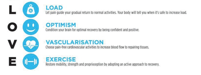 而急性期之后,“LOVE”原则则强调对软组织的“爱”。这包括在不引起疼痛加重的情况下进行最佳负重,以促进组织修复;保持乐观的情绪,因为大脑对受伤的情绪反应会影响组织的恢复效果;进行无痛范围的有氧运动,以提供足够的血给受伤组织;以及进行有效的功能锻炼,帮助恢复受伤组织的灵活性、力量和本体感觉,防止再次扭伤。
