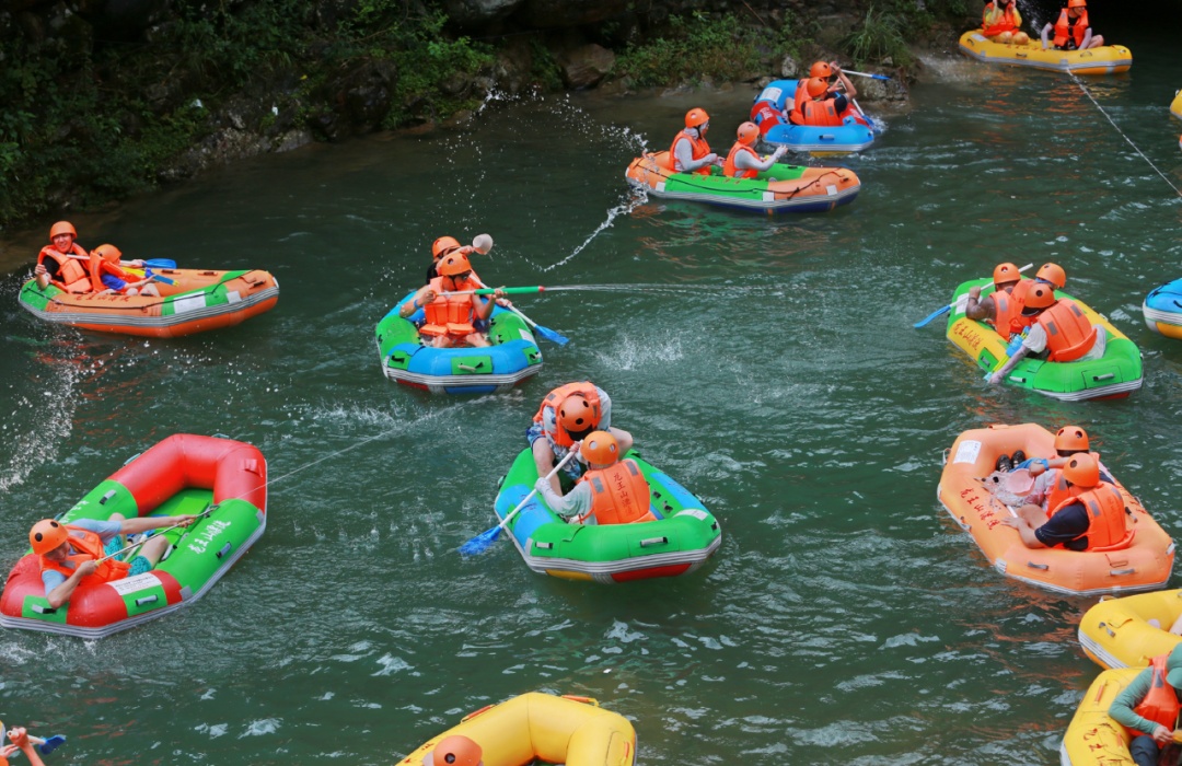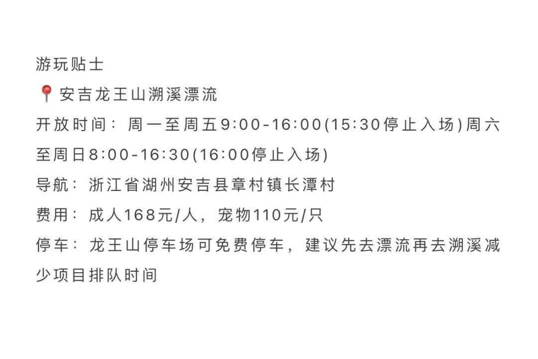 安吉龙王山溯溪漂流全长2公里,落差约100米,全程体验约2小时,途经20多处滩、30多道湾、56个滑道,有急有缓,乐趣无穷。漂流时使用的是两人皮划艇,小型犬建议牵绳抱在怀中或者绑在身上,以防不慎落水,记得提前给狗狗准备救生衣。