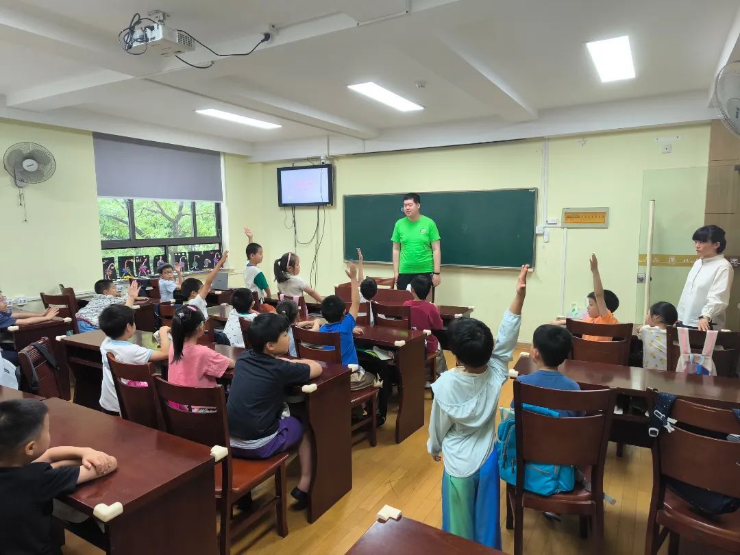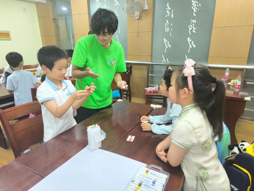 “很热闹!”“很好玩!”是大多孩子对爱心暑托班的评价。不过,一个班级20多人,最小的孩子才7岁,要想让孩子们觉得热闹又好玩,又要维持好课堂秩序,少不了志愿者们的默默付出和陪伴。今年,凉城新村街道暑托班的三名志愿者分别来自上海政法学院和上海师范大学。