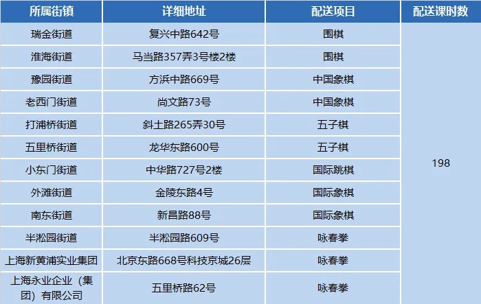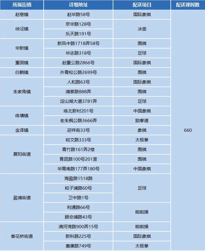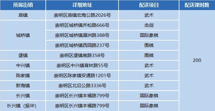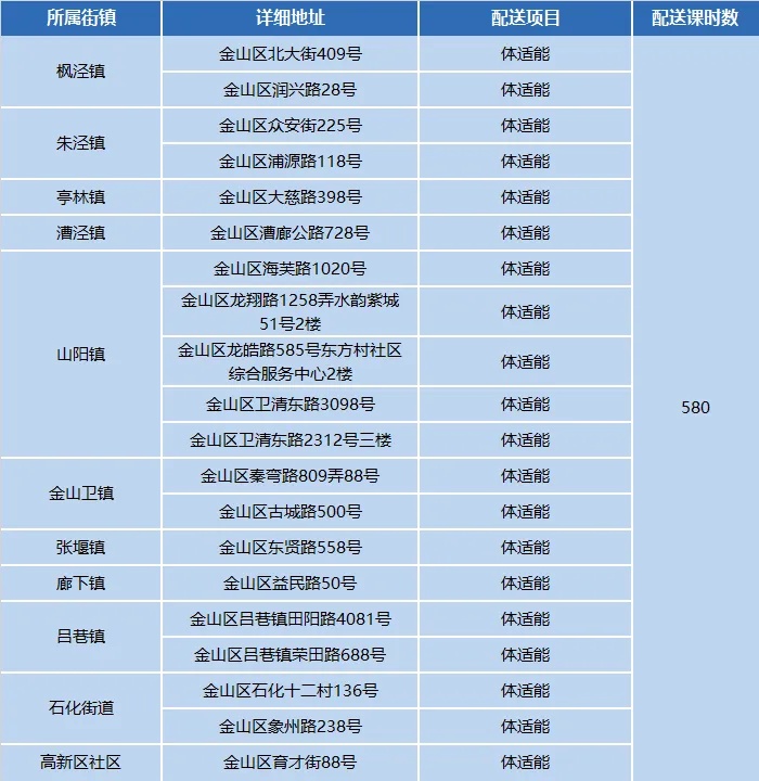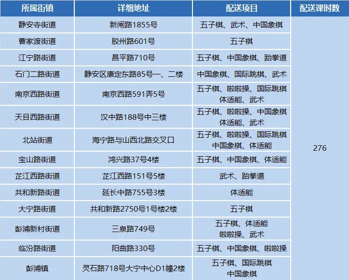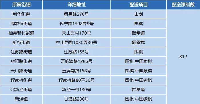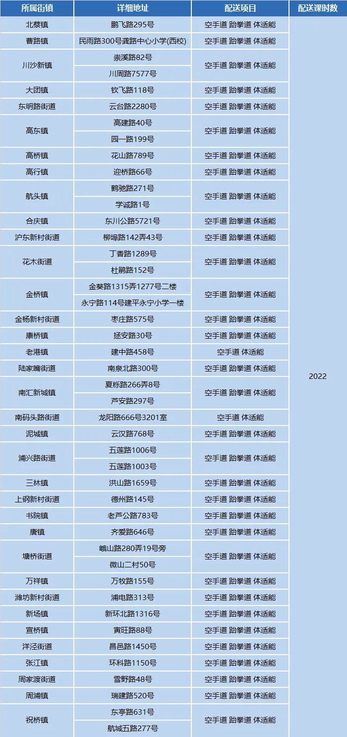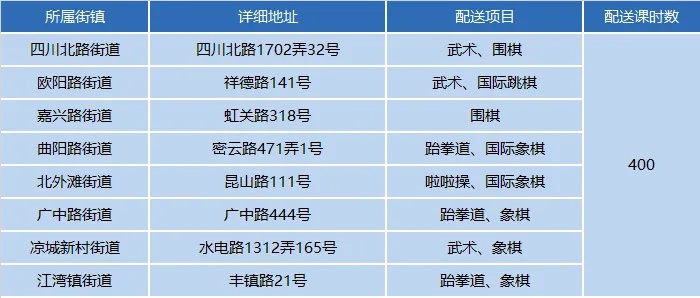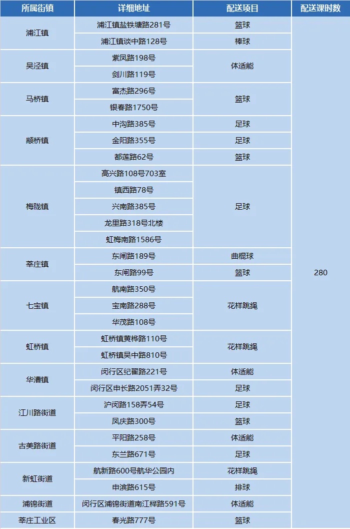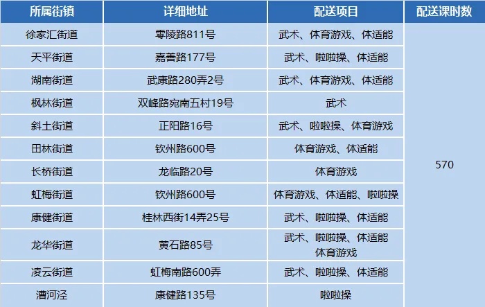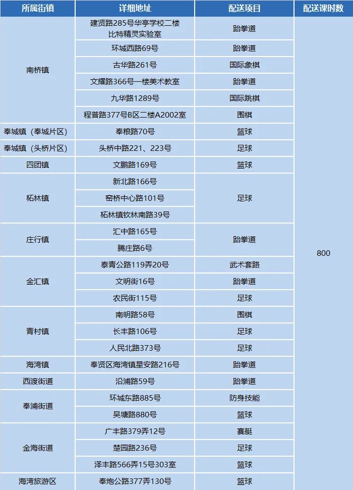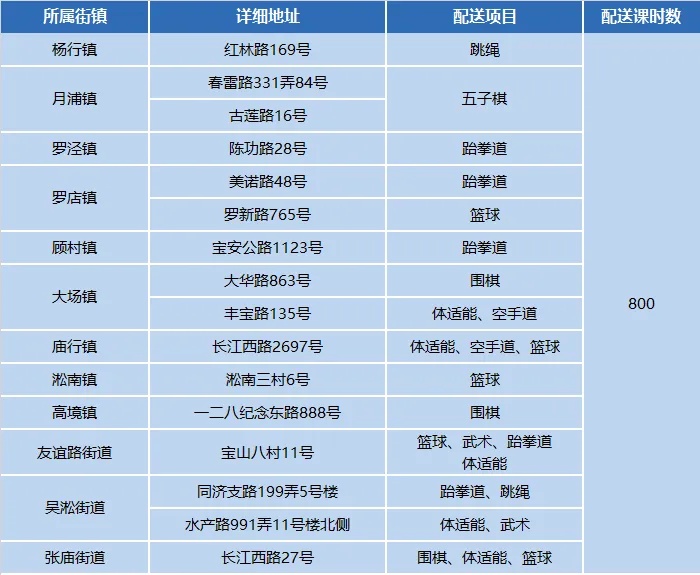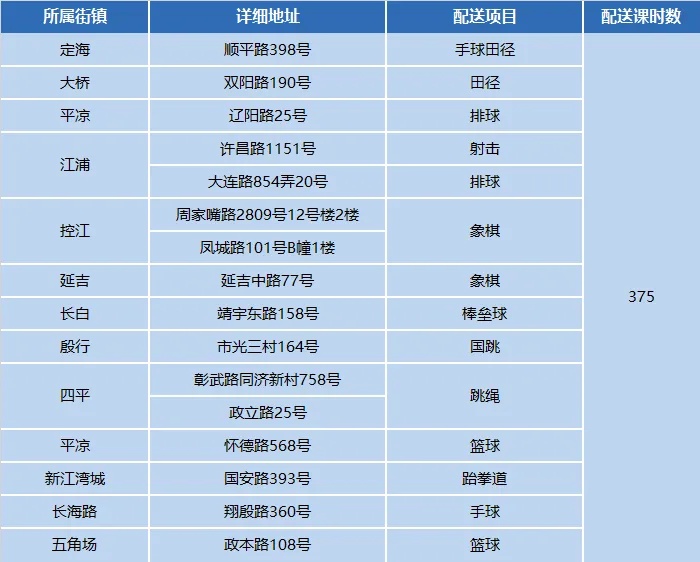表格中所列为该办班点举办体育项目培训的汇总情况,具体开设项目将根据场地、天气、参加时间、班级等情况确定。