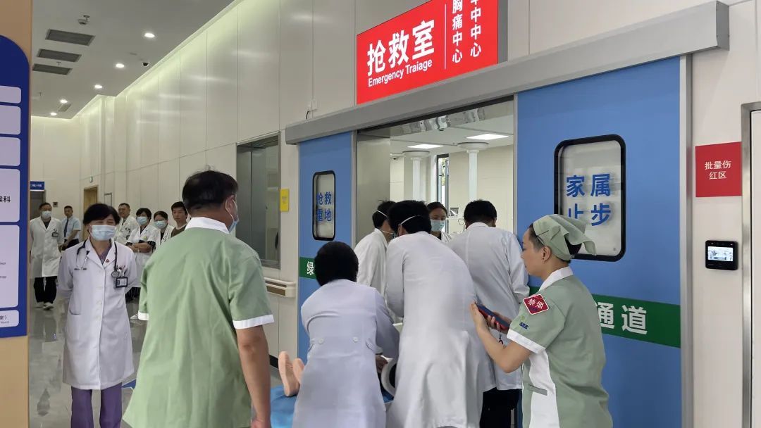 “准备气管插管,准备气管插管工具,连接呼吸机。”面对同时接诊8名伤员的紧急情况,抢救室护士迅速分诊,针对发生失血性休克的处置,各岗位医护人员快速反应,默契配合,应急资源调配及时,表现出较好的现场急救素养,体现了急救工作的快速性、准确性、有效性。
