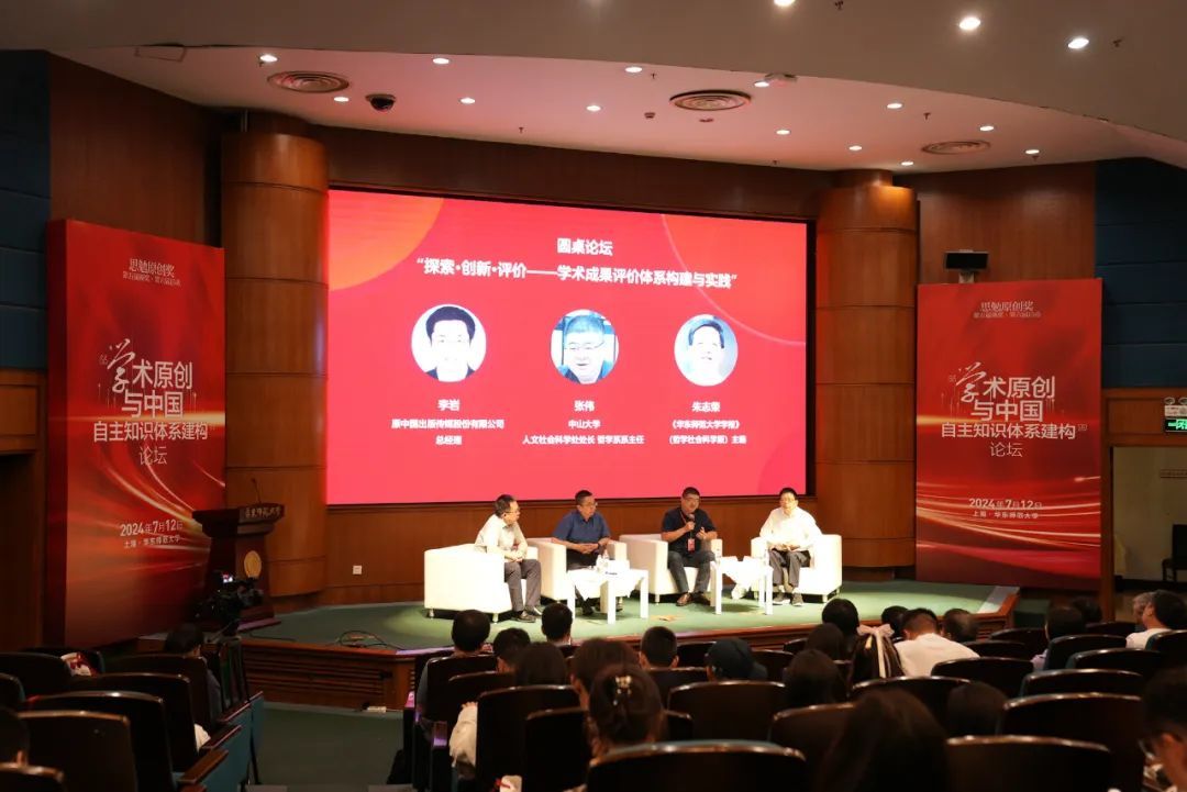 大会还设置了圆桌论坛环节,原中国出版传媒股份有限公司总经理李岩,东方出版中心党委书记、执行董事陈义望,中山大学人文社科处处长兼哲学系系主任张伟教授,《华东师范大学学报》(哲学社会科学版)主编朱志荣教授围绕“探索·创新·评价——学术成果评价体系构建与实践”这一议题进行了深入交流。