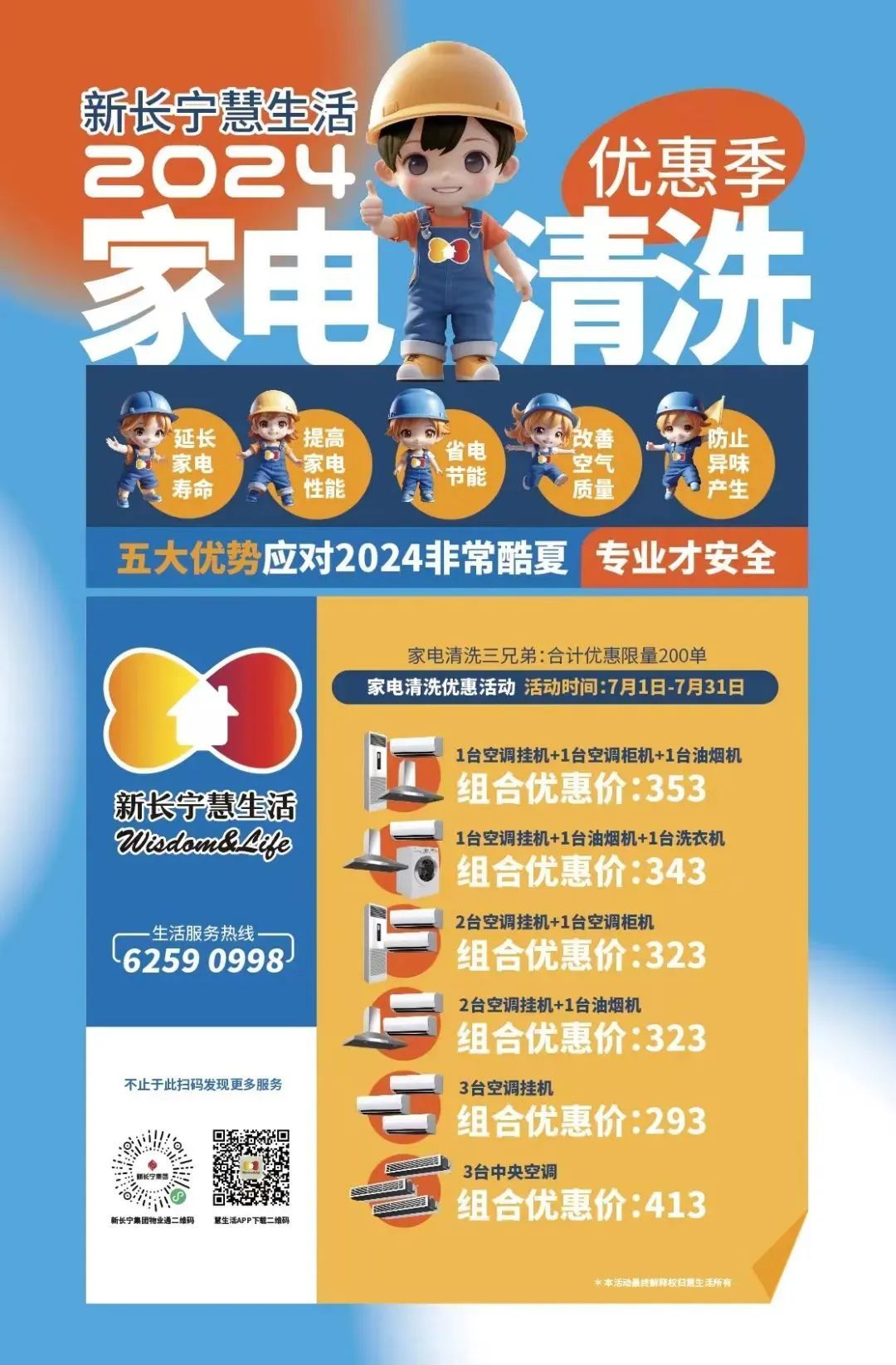 在细菌容易滋生繁衍的夏季,新长宁慧生活开启了“家电清洗”狂欢季,通过优惠的套餐价格和专业化的服务团队,为区内居民的家居电器进行彻底专业的清洁,打造干净、整洁、舒适的生活环境。