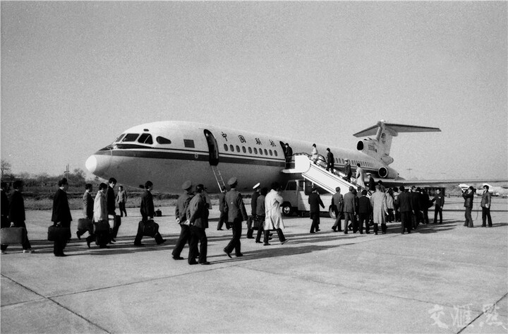 1959年1月,位于亭湖的南洋机场建成通航,首条航线为南京航线。图为20世纪末,乘客在南洋机场登机情景。