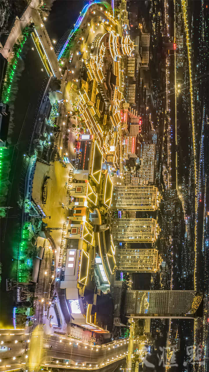 夜幕降临,霓虹璀璨,先锋岛散发迷人魅力。