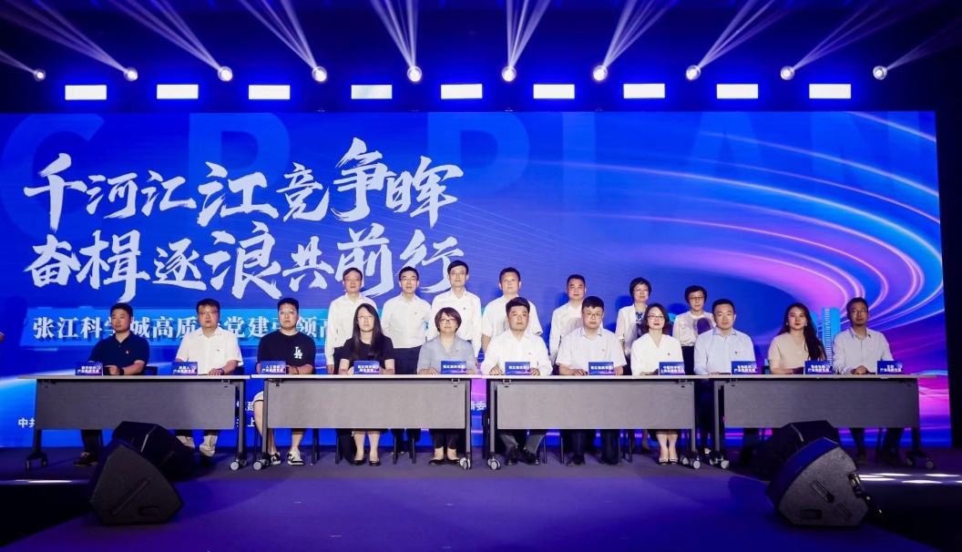 张江科学城六大产业集群党建联盟成员单位代表,张江镇、张江集团、张江高科、张江科学城综合党委、区域化单位中国科学院上海高研院等单位代表上台签约,成为张江科学城产业集群党建联盟扩容后的新成员。“以党建联盟推动区域发展,实现党建‘内链’驱动产业‘外链’,可以更好地服务科技创新策源和高端产业引领。”张江科学城综合党委书记周秀华表示。