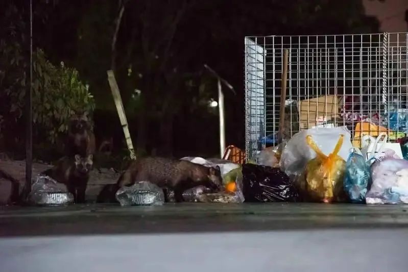 ③小区绿化带里有投喂流浪动物的行为,并且貉出没的区域靠近湿垃圾厢房,这些食物源非常吸引貉来到小区生存。