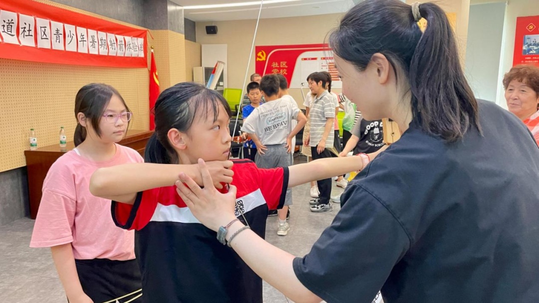 这个暑假怎么过?近日,定海路街道第三睦邻中心携手公助居委会,开展暑期青少年射箭体验班,邀请杨浦区少体校射箭教练朱珏蔓前来授课。