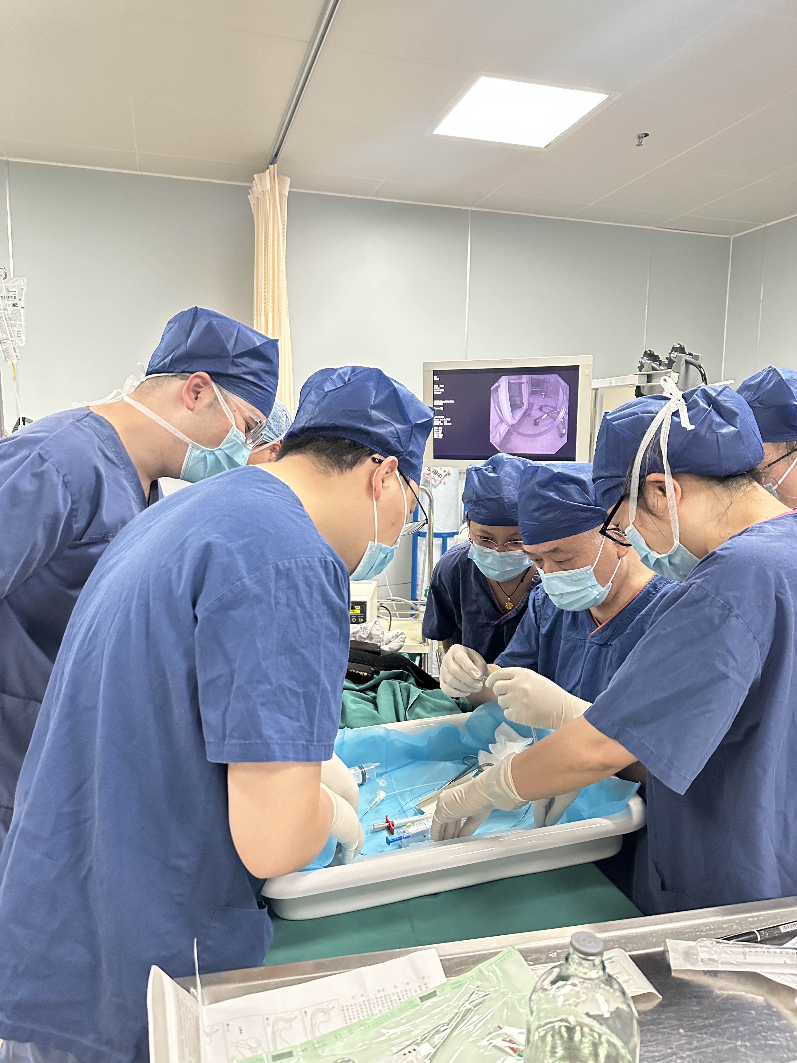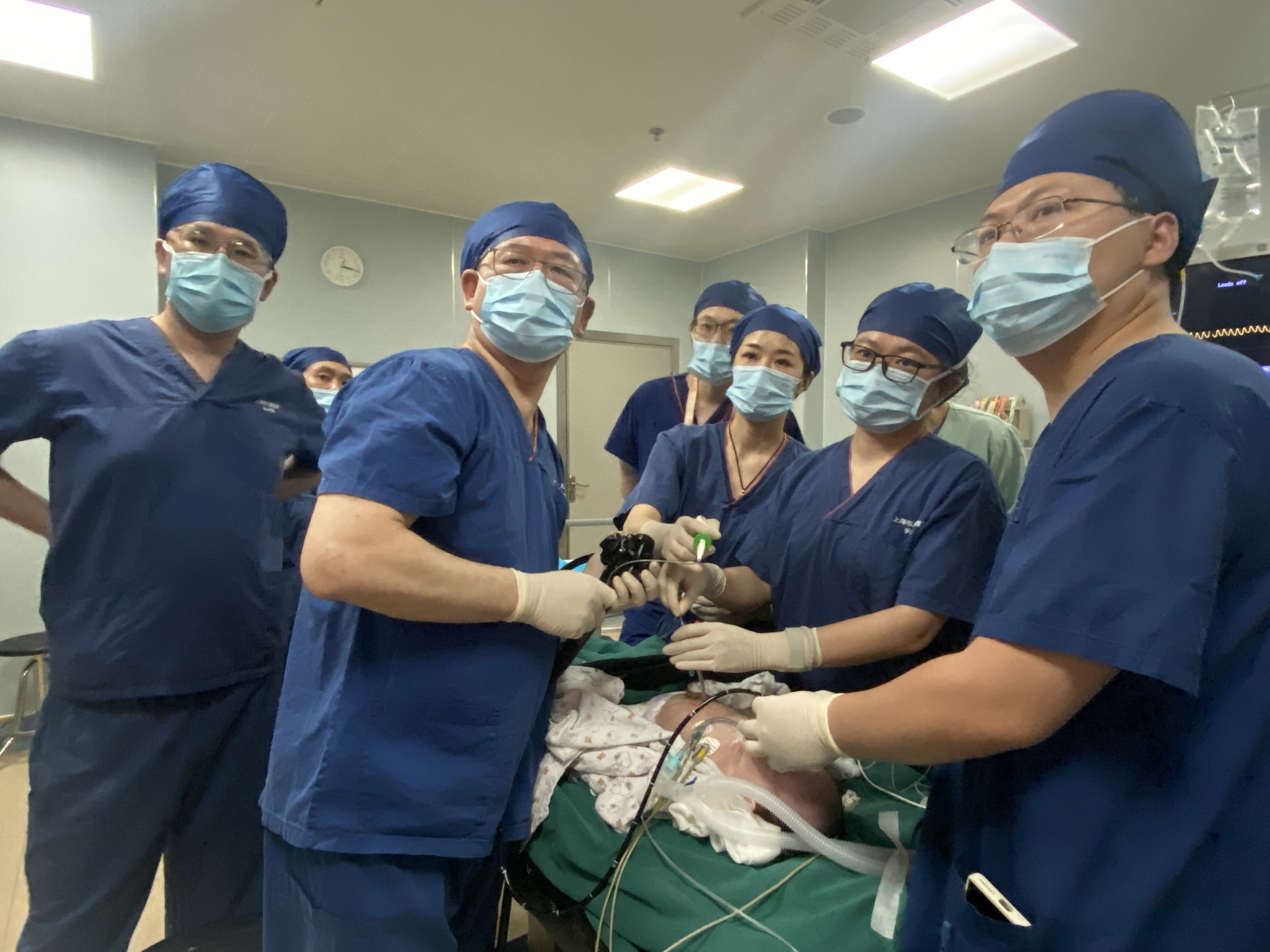 为寻求更好地喂养方式,新生儿科、耳鼻咽喉头颈外科找到了消化二科主任医师刘海峰,开展多学科讨论,制定了内镜下经皮胃造瘘空肠管置入术(PEG-J)的治疗方案。与传统技术相比,无需开腹手术,具有微创、术后恢复快、易护理、并发症少等优势。