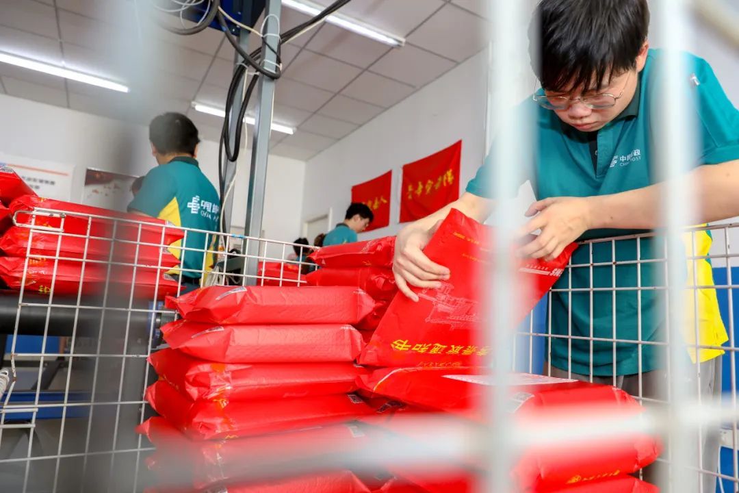 今天上午,中国邮政集团公司上海市分公司闵行区东川营业部的投递员们就已经早早到岗、严阵以待,因为上海第一批高考录取通知书即将抵达这里,随后会通过分拣、下段、投递等步骤逐一送到考生手中。