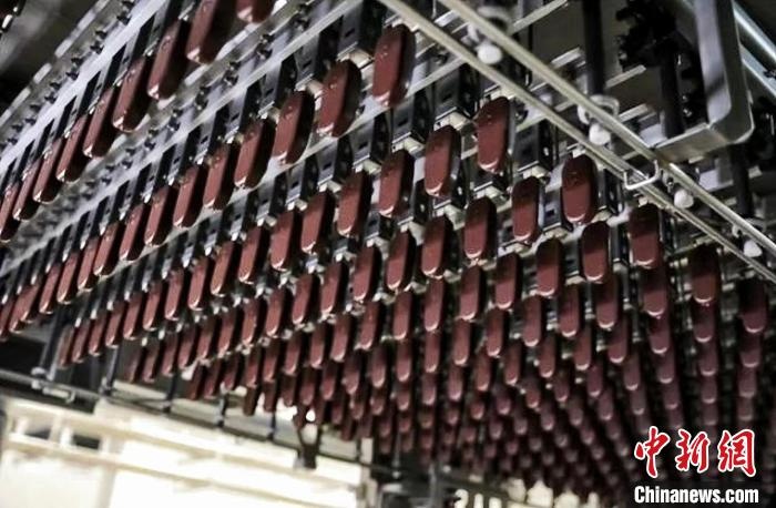 联合利华太仓食品生产基地中的全球首个梦龙冰淇淋柔性生产线。(联合利华供图)