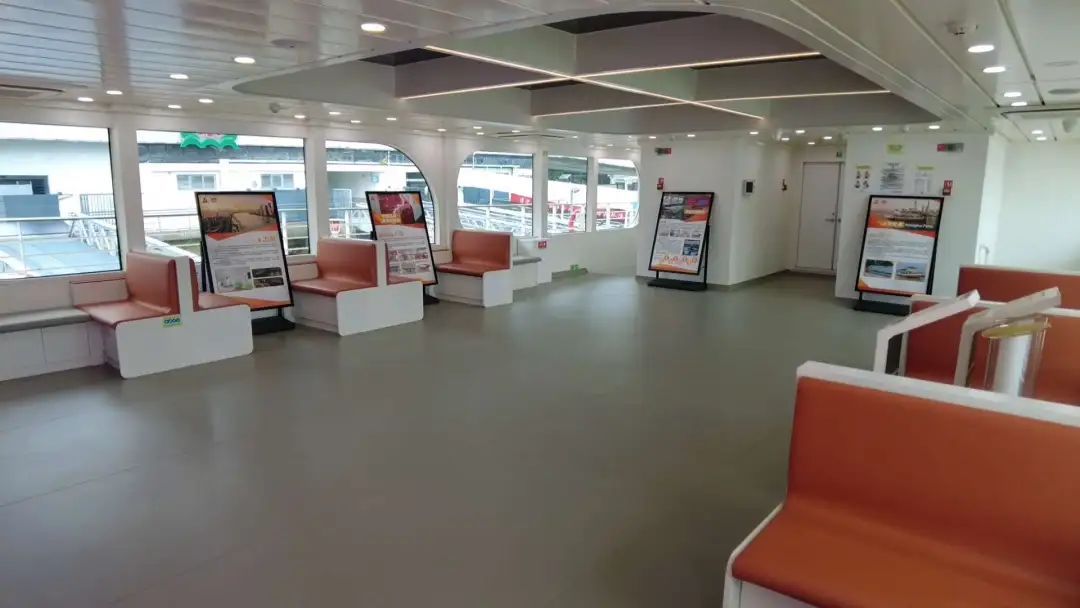 走进客舱,与以往渡轮不同的是,感觉犹如坐在浦江游轮,特别是二楼,甲板呈现360度开放式的,更便于乘客一边摆渡,一边欣赏浦江美景。