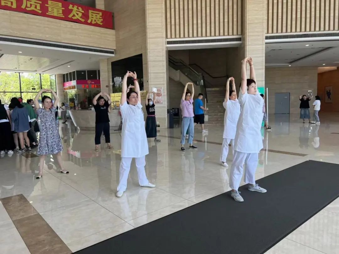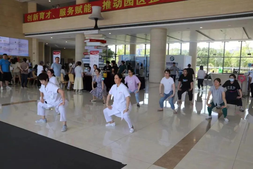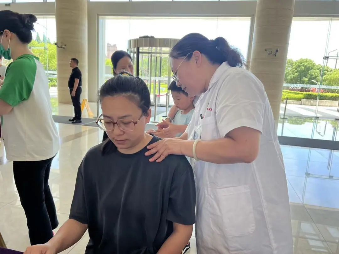 记者现场看到,“白领们”的咨询主要集中在肩颈酸痛、内脏疾病、体寒体湿、精神睡眠等方面。吴耀持教授带领来自淞南镇、友谊路街道、顾村镇、罗店镇医疗机构的“陆氏针灸”宝山弟子为白领和职工带来了中医健康咨询,针灸、推拿、杵针等传统适宜技术体验,以及时令中药茶饮、香囊等中医药养生文化体验。“陆氏针灸”宝山弟子还带领大家一起练习八段锦。