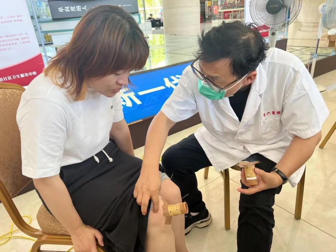 当天中午,在华滋奔腾大厦一楼大堂,义诊台前围满了前来咨询的公司白领。由于工作需要,小丁每天都要久坐办公室伏案工作,加上长时间吹空调,常常感到膝盖隐隐作痛。望闻问切后,吴教授运用“陆氏针灸”手法,通过针、灸配合,为小丁及时解忧,也带大家亲近“针灸”这一“中医瑰宝”。