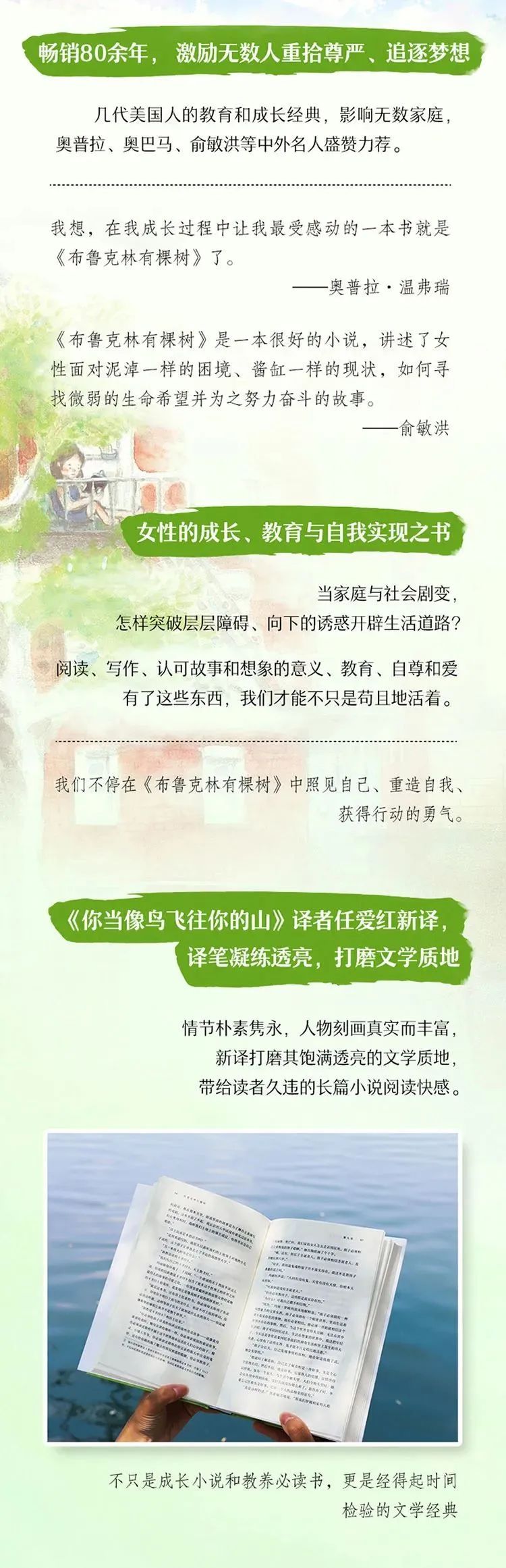 100多年后,弗朗茜的经验与感受仍能照进当下我们的生活。比如我们对更高教育的执迷,我们追求学历所许诺的更好、更高阶层的生活(即便这种许诺看起来脆弱且摇摇欲坠)。比如一个人,依靠奋斗和努力,脱离原生阶级之后,如何回看自己的出身。比如变化每天都在窸窸窣窣地发生、人人都感到眩晕与摇荡的时代,个体怎样笃定地成长,像一棵树那样。
