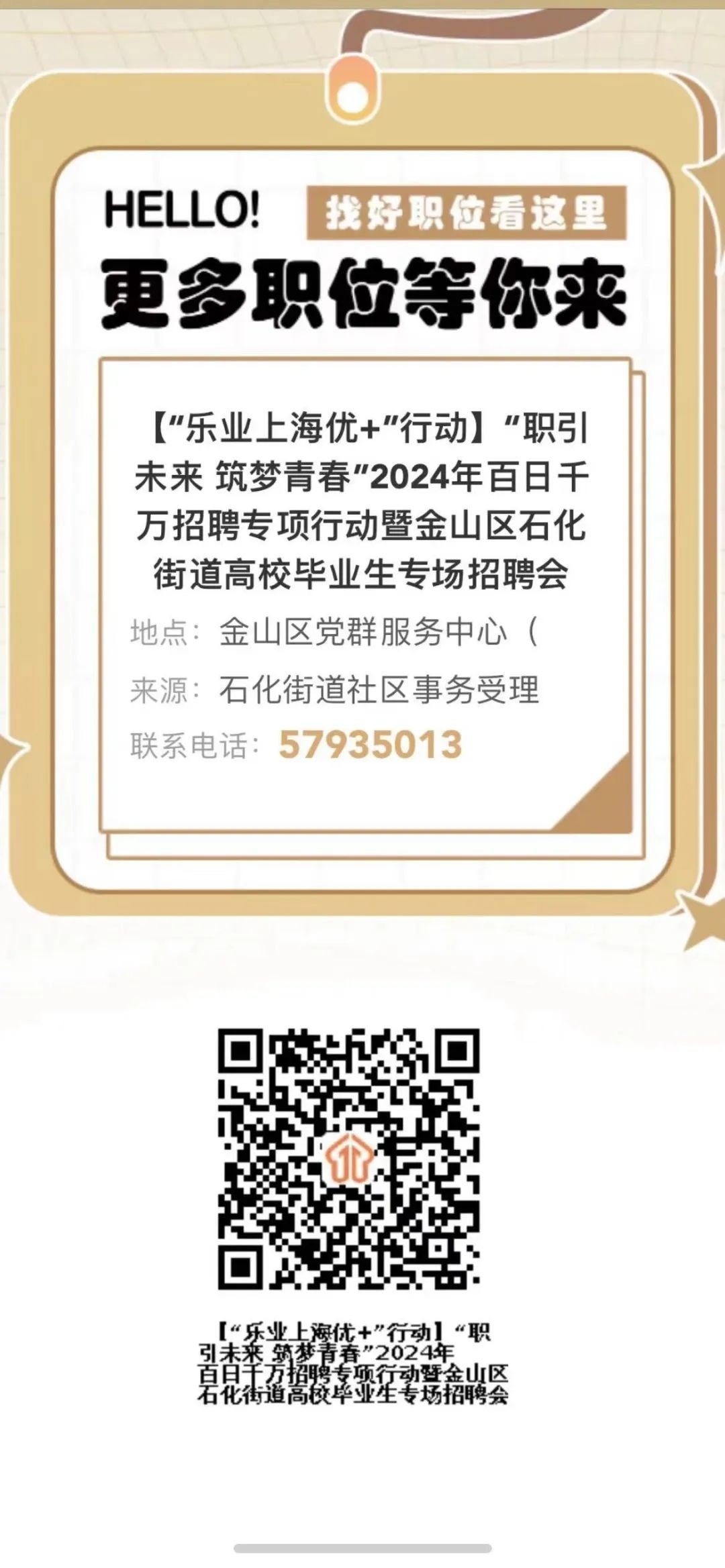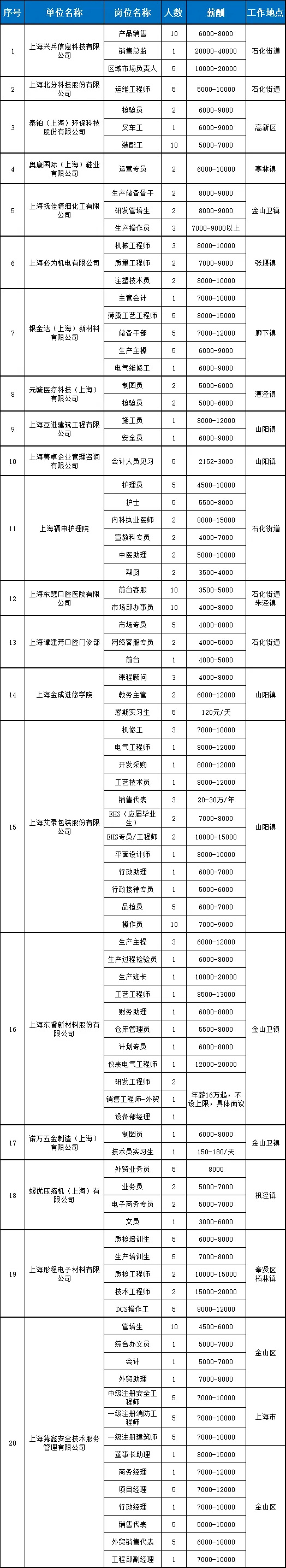 2024年百日千万招聘专项行动暨金山区石化街道高校毕业生专场招聘会岗位汇总表