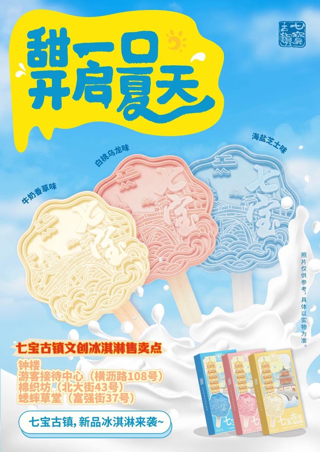 据介绍,冰淇淋有白桃乌龙味、海盐芝士味和牛奶香草味三种口味,每支19元。“其实一开始做了很多种,经过小范围试吃,大家一致认为这三种最好吃,就推出了这三种。”现场工作人员还带记者解锁了七宝老街新的打卡方式,拿着冰淇淋和钟楼合影,让两种不同风格的钟楼同框,别有一番景致。