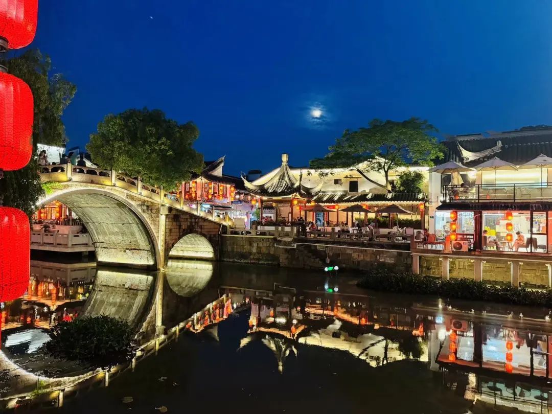 到七宝老街游玩,除了尝尝文创冰淇淋,当夜幕降临,这里灯光秀也是一道风景线。从钟楼广场到北大街,从康乐桥到蒲汇塘桥再到安平桥,荷塘月色、锦鲤跃龙门、皮影戏等带有传统元素的灯光交相辉映,让这座千年古镇蒙上了一层绚丽色彩。