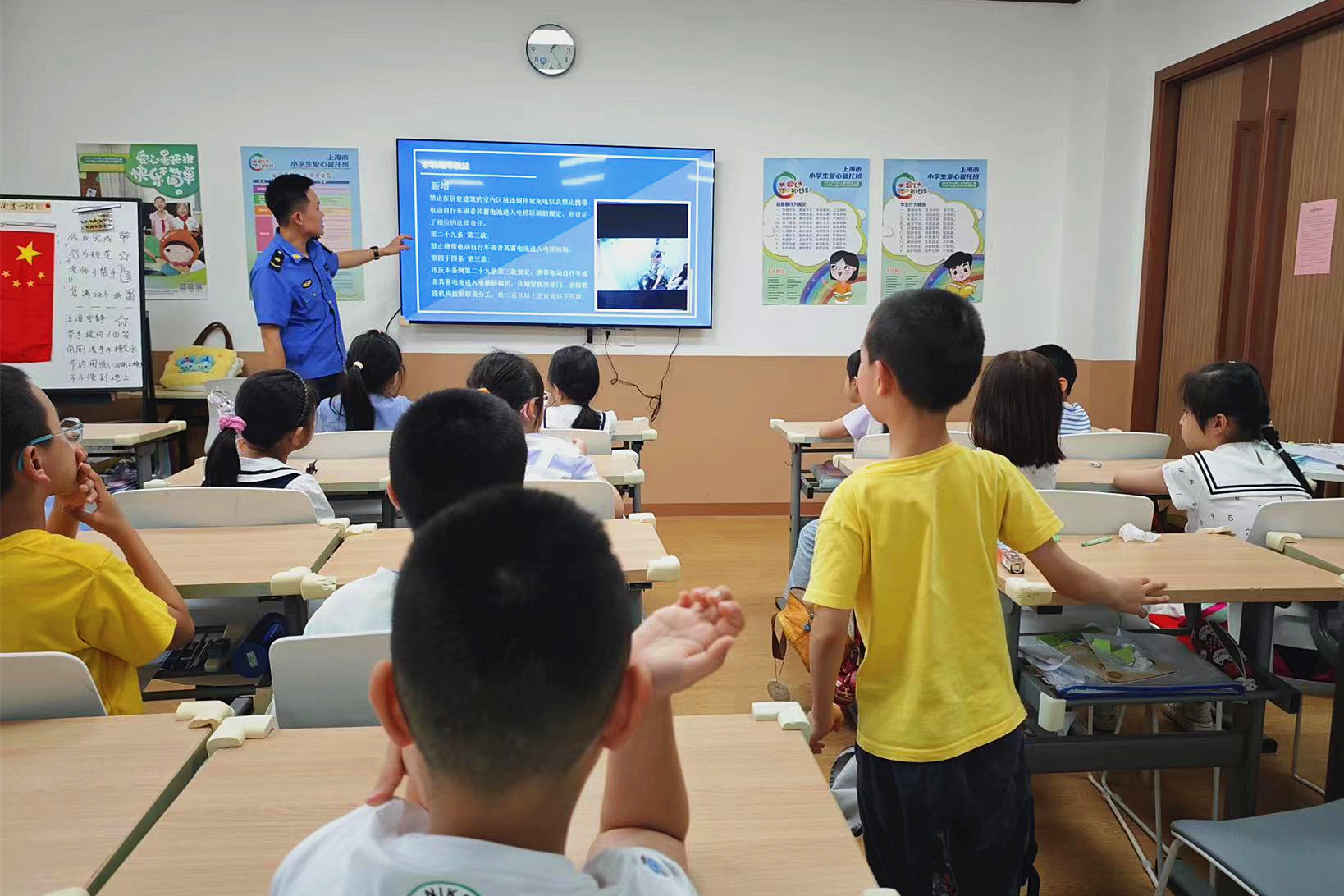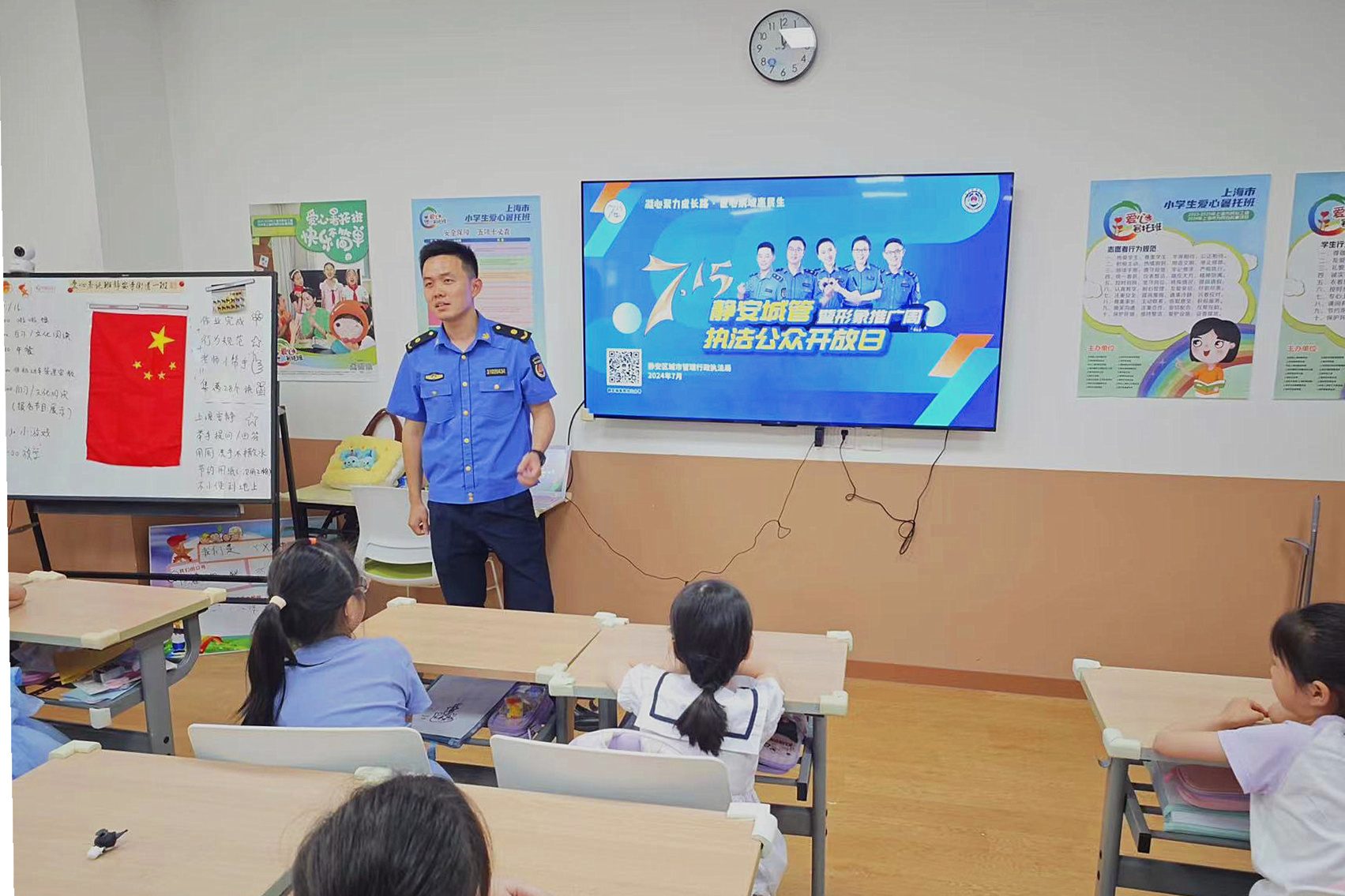 7月16日,静安寺街道综合行政执法队联合街道相关职能部门,以“7.15公众开放日”为契机,走进暑托班,开展爱心宣讲活动,提高少年儿童的文明素养和对城市精细化治理的认识度、参与度,培养孩子们的城市“主人翁”意识,让他们的“小手”成为推动城市精细化治理的又一助力。