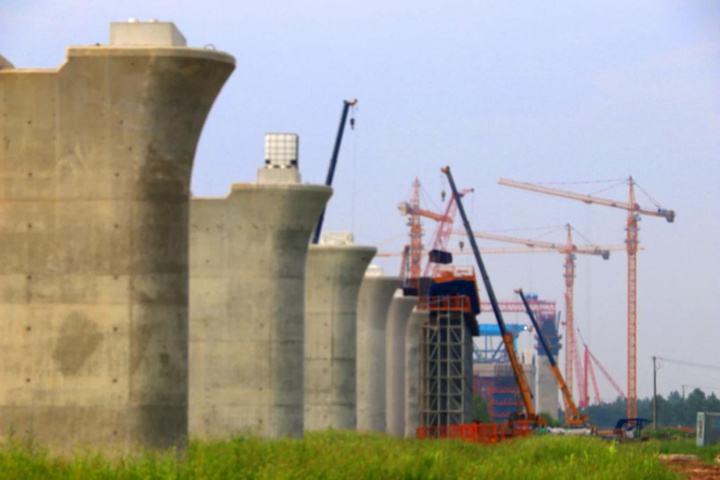 沪渝蓉高铁崇明特大桥江苏段墩身全部完成
