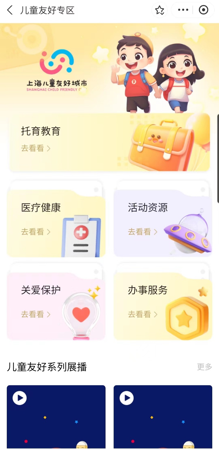 《上海市推进儿童友好城市建设三年行动方案(2023-2025年)》提出,建设完善“随申办”儿童专区,加强相关政策服务集成力度。