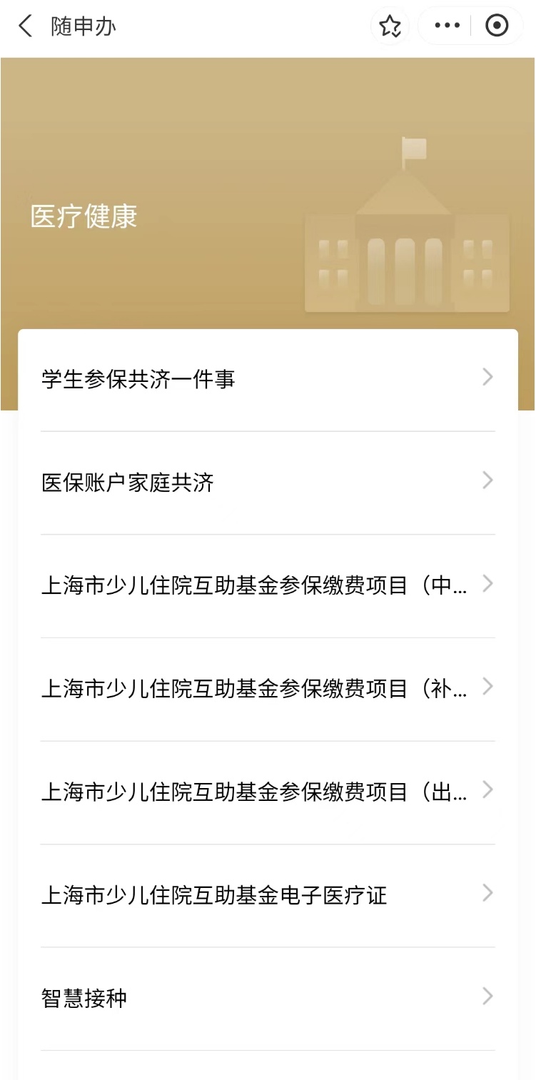 “医疗健康”版块汇集了儿童就医、参保、疫苗接种等相关服务。