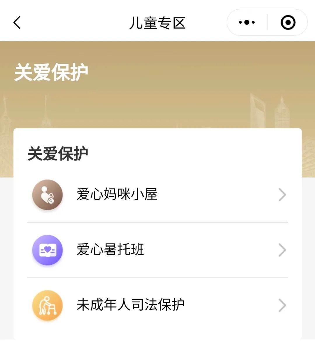 “关爱保护”版块在线守护各位宝妈和特殊儿童,相关服务点一点即可办理,省时更省心!