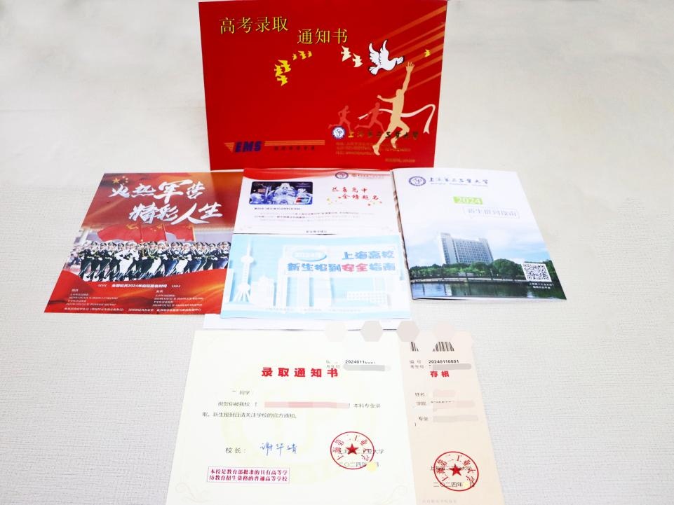 2024年上海大学为每一位本科新生精心准备了录取通知书套袋,外包装采用“档案袋”的设计理念,既是来自全体上大人的美好祝愿,也是记录每一位新生开启奋斗历程的起点。录取通知书函套印有上大精神谱系,由校领导共同寄语勉励。套袋中有精心设计的无人艇拼装模型,它不仅代表了学子们即将启航的学术旅程,更象征着勇敢探索未知的勇气。还有“泮畔”锦鲤钥匙扣、校史主题书签、定制卡套、盲盒校徽等礼物,为新生们送上满满的祝福。