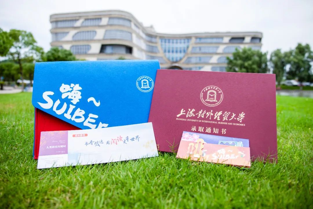 2024年录取通知书礼包整体定制成蓝红撞色毛毡包,新潮且学院感十足,一声“嗨~SUIBEr”,亲切、欣喜又充满热情。背面还有红色固定带“I SUIBE”,可固定在行李箱上,方便携带。礼包内2枚定制金属书签,以校园标志性建筑为基础,与立式折卡相映成趣,描绘了校园春意盎然和爽朗金秋的别致景色,设计灵感来自“上经贸大第二届本科新生礼物设计大赛”中获奖学生作品,学长学姐们用特有的方式表达了对萌新们的欢迎。今年校长将以电子书的形式继续向每一位新生赠书,书名待萌新们自己来揭晓啦!另外,还有小小惊喜藏在新生礼包内,这里先卖个关子噢!