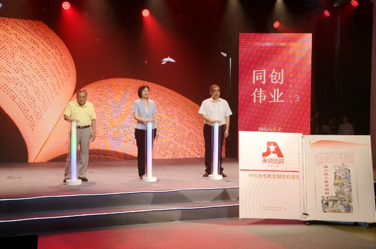 情景思政课展演《携手·红色学府》带领观众重温了国共携手创办“上海大学”的热血岁月。同时,由中共静安区委统战部、静安区社会主义学院、上海戏剧学院创意学院共同发起的第一届统战源文创设计大赛的成果也进行了展示和颁奖。