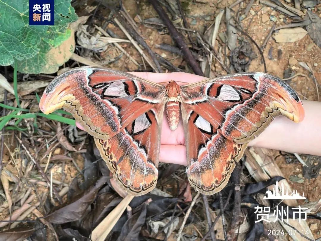 近期,广西师范大学生命科学学院昆虫学团队在广西大桂山鳄蜥国家级自然保护区进行昆虫多样性调查任务时,发现一只体型巨大的蛾,经专家鉴定,确定为世界上体型最大的蛾类——乌桕大蚕蛾Attacus atlas。