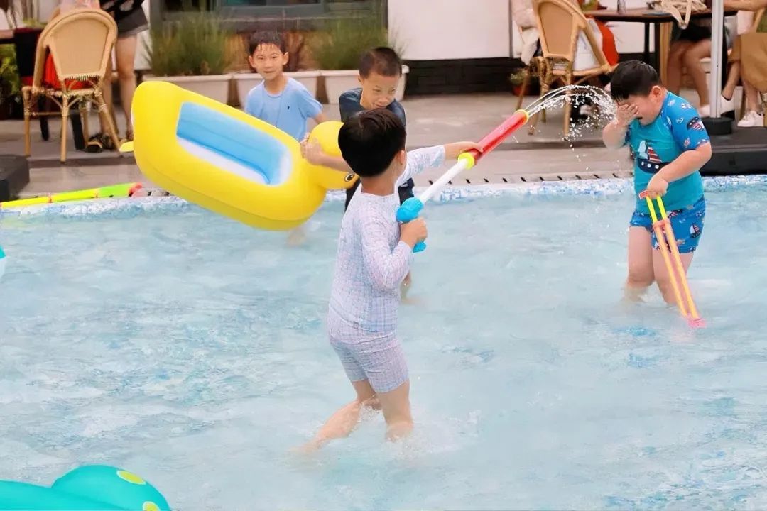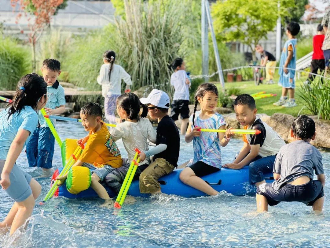玩水的快乐和夏天撞个满怀,一场与“水”邂逅的水枪大战活动拉开帷幕!小朋友们聚在一起,展开激情混战。水枪喷射而出的水流在空中描绘出一道道迷人的弧线,落在身上带来丝丝清凉。孩子们的笑声与尖叫声此消彼长,尽是童真与欢乐。