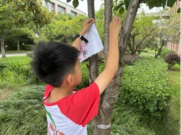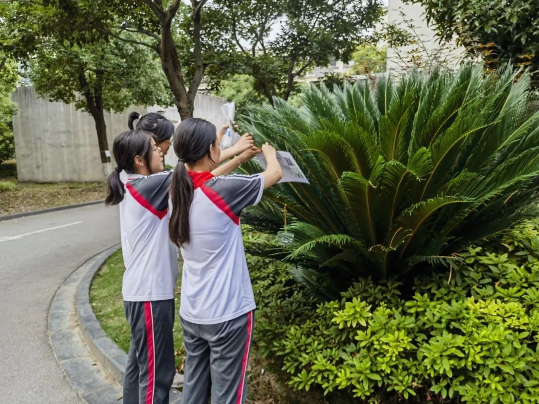 暑假前夕,学生们来到学校附近的悦澜博翠社区开展植物标识项目,学习了社区植物的名称和特点,为植物制作并挂上标牌,为社区生态环境建设贡献了一份力量。