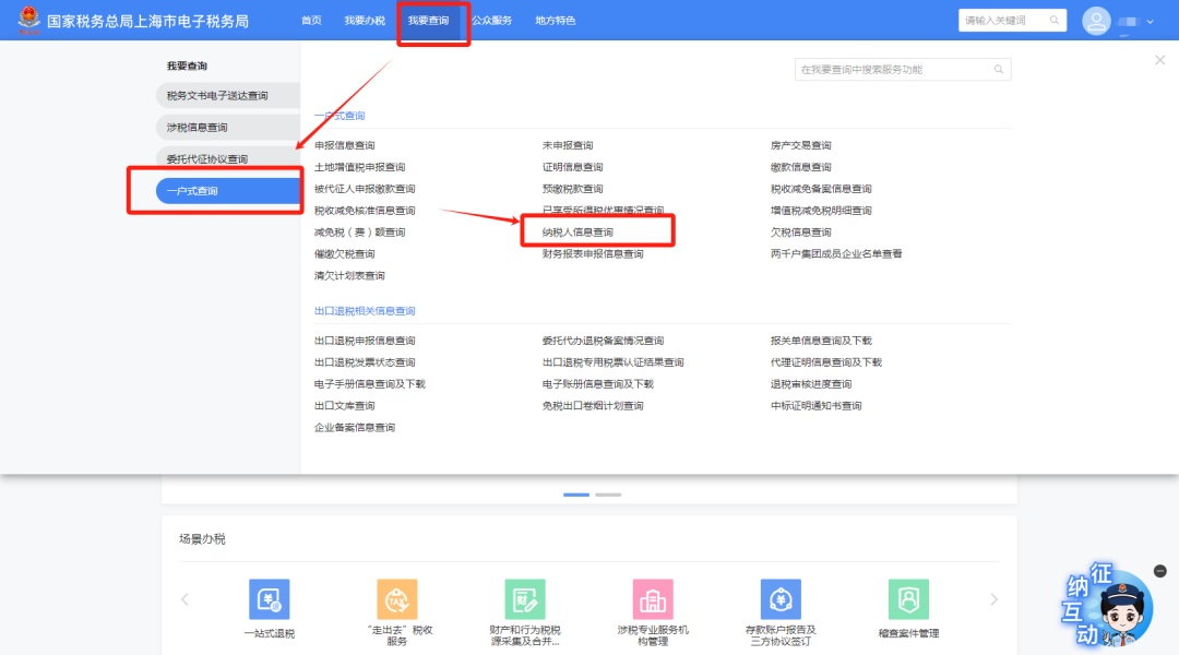 登录新电子税局后,点击【我要查询】-【一户式查询】-【纳税人信息查询】,可查询纳税人基本信息、税费种认定信息、资格信息、核定征收信息等信息。