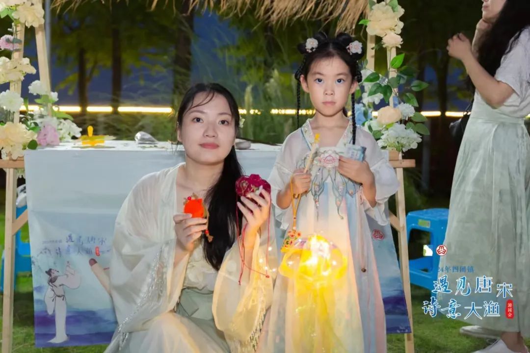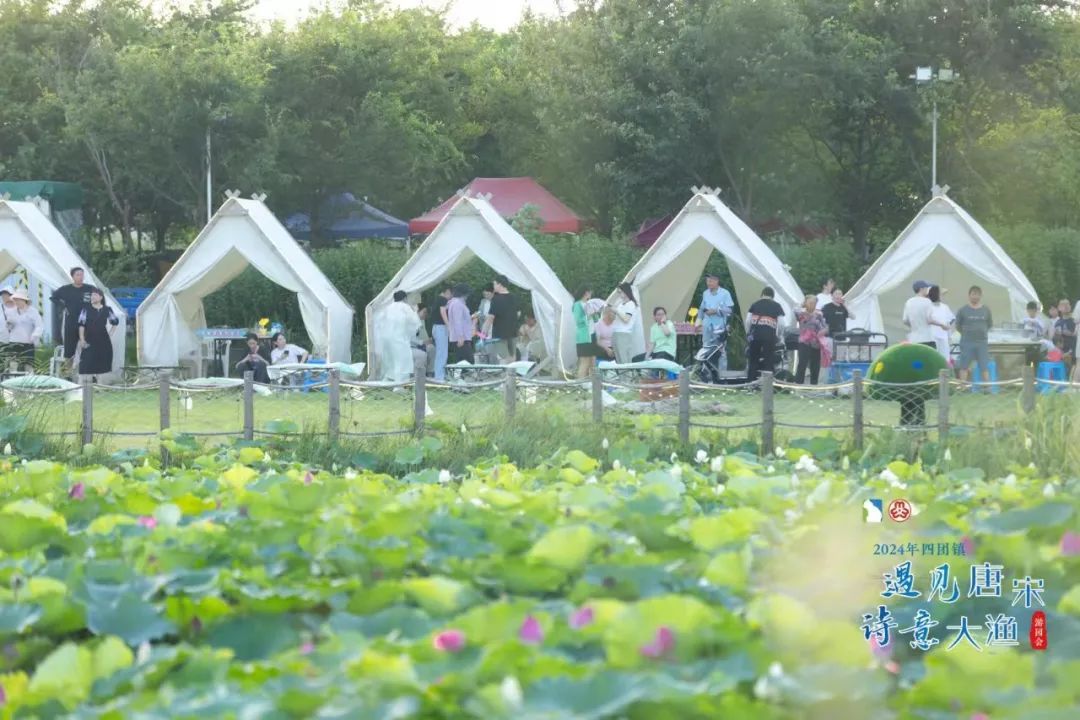 7月21日傍晚,伴随着激昂的音乐、欢快的鼓点,四团镇“遇见唐宋 诗意大渔”游园会正式在渔墩村“大渔营造”露营基地拉开帷幕。 本次游园会有龙虾垂钓的野趣、古装唐宋区的文化体验,都让游客们仿佛置身于千年前的盛世之中。本次活动还设置了露营区域,为游客们提供了一个亲近自然、放松身心的绝佳场所。 龙虾垂钓区 Part 01 在这里大家都可以化身垂钓达人,与水田中的小龙虾斗智斗勇,钓到的龙虾还可以带走,一起实现小龙虾自由! 古装唐宋区 Part 02 穿上古装,一秒穿越回唐宋盛世,古诗词竞答、投壶、捶丸,大家玩得不亦乐乎。 香囊DIY、漆扇、人偶DIY等手作体验更是让大家亲手感受到了传统文化的魅力,仿佛置身于千年前的繁华盛世! 现代露营区 Part 03 大草坪上的露营时光简直不要太惬意,各种美食摊位琳琅满目,冰镇龙虾、卤毛豆、花生等等,简直就是吃货的天堂,这里还有自助烧烤摊可以亲手制作美食,享受烧烤的乐趣。 当晚那场绚烂的烟花表演,将夜空装点得如诗如画,让游客们陶醉其中,久久不愿离去。 此外,还有来自四团各中小学的孩子们为“遇见唐宋 诗意大渔”游园会带来精彩表演。 舞蹈《书香里》,孩子们用优美的舞姿演绎书香四溢的韵味,仿佛带领我们穿越时空,感受千年文化的韵味。 古筝表演中,孩子们用灵巧的双手弹奏出悠扬的旋律,让我们领略到了传统乐器的独特魅力。 舞蹈《子曰》,孩子们以灵动的身姿演绎孔子智慧,传递着中华文化的博大精深与仁爱之道。 活动花絮 本次活动以文旅深度融合赋能乡村振兴,将传统文化和现代露营相结合,大力推动上海暑期消费,为四团镇的夏日经济增添了一抹亮丽色彩。未来,四团镇将围绕沉浸式体验、创意市集、艺术展览等夜间消费新场景,持续创新活动形式,推动夜间经济发展,激发四团文旅新动能。