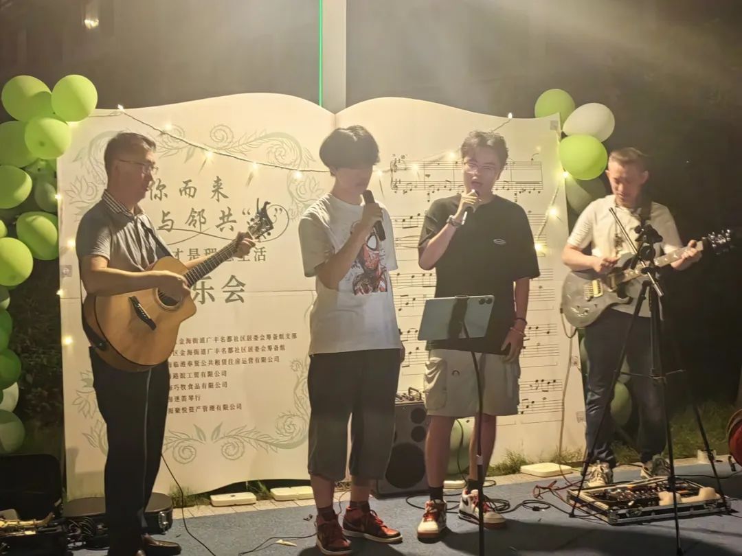 与此同时,舞台上,更有才艺出众的居民自告奋勇,登上舞台展示自我,赢得了阵阵掌声与喝彩。从流行的摇滚到经典的民谣,每一首曲目都触动着在场每一个人的心弦。居民们随着节奏轻轻摇摆,闭上眼睛静静聆听,享受着音乐带来的片刻浪漫。