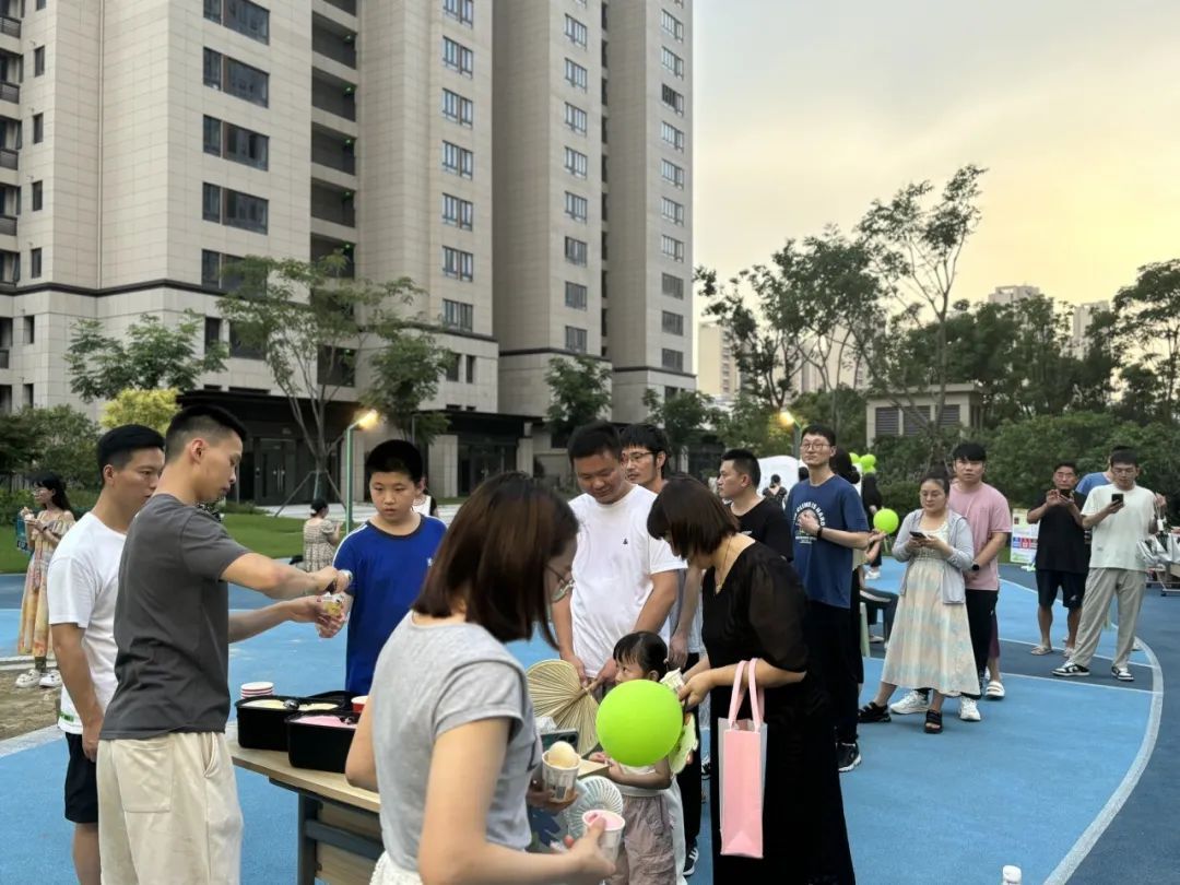 夏日的傍晚,吹着舒适的凉风,居民们欢聚在一起,烤串、冷饮配上惬意的音乐,大人们结伴而行,小朋友在一旁做游戏,美好的氛围在此刻蔓延……