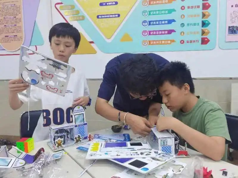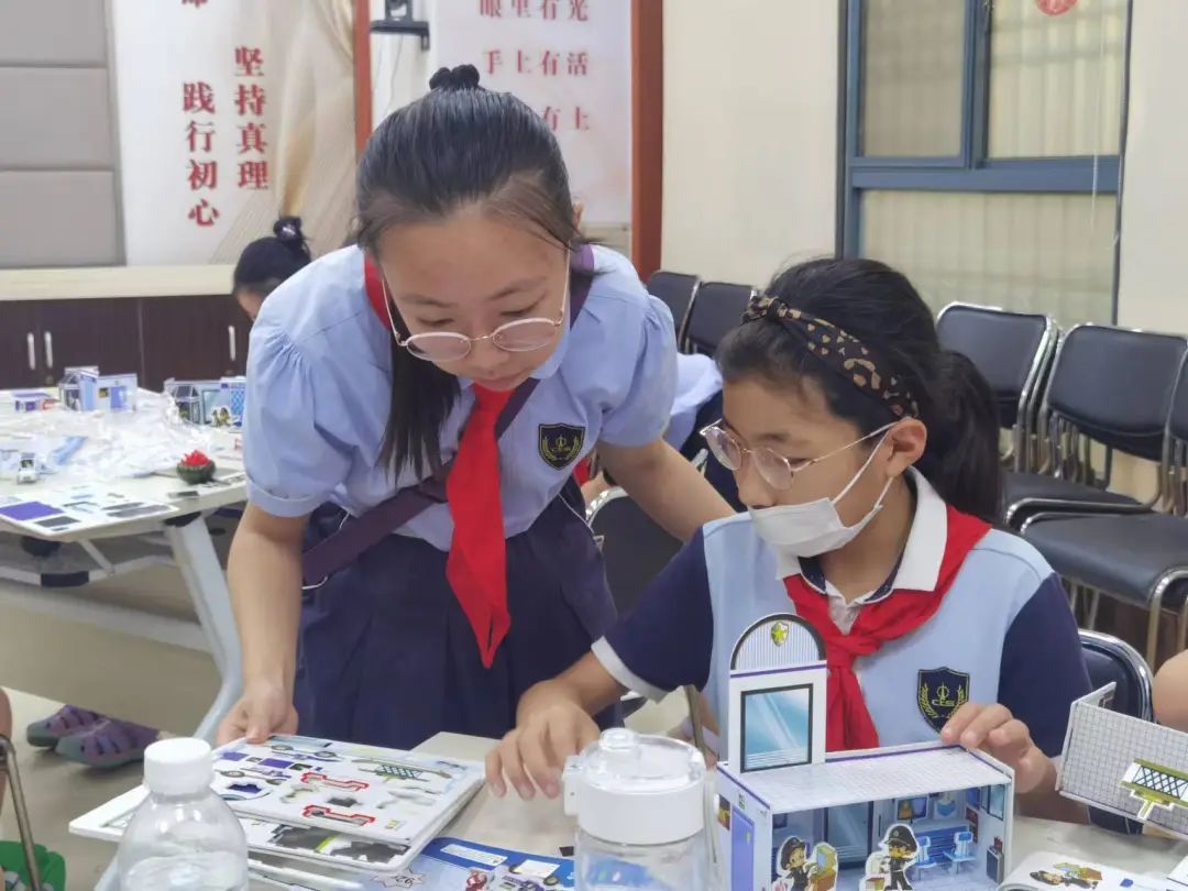 为了提高孩子们的学习兴趣,现场还进行了“POLICE公安”DIY环节,零零碎碎的模型部件拼插繁琐,在孩子们的努力下,一个个立体“迷你警察局”诞生了!