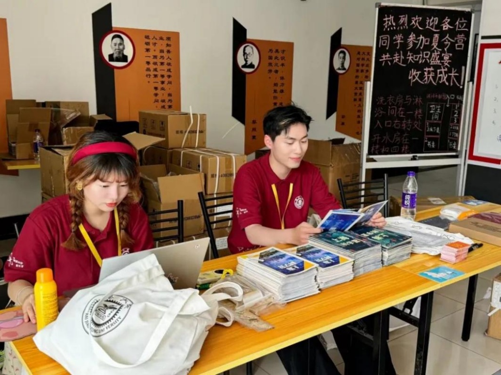 寝室楼下为前来报道的营员设置了服务驿站,活动志愿者在此保障营员们便捷、高效地完成入住。