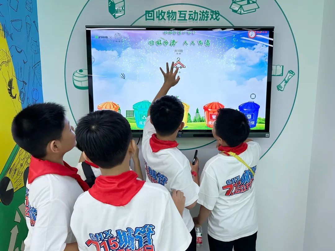 此外,在知识问答区域和可回收物回收区域,体验官积极参与电子屏幕互动答题,体验垃圾分类小游戏,在轻松愉快的氛围中巩固所学知识。
