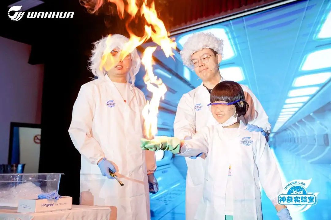 活动中,万华化学神奇实验室讲师通过生动有趣的“科学秀”,演示空气炮、火焰掌等有趣的科学现象,让现场的孩子们不仅感受到了视觉上的震撼,更让他们自己掌握空气和火焰,体验结束后,老师还用通俗易懂的语言解释了这些现象的基本原理,寓教于乐。